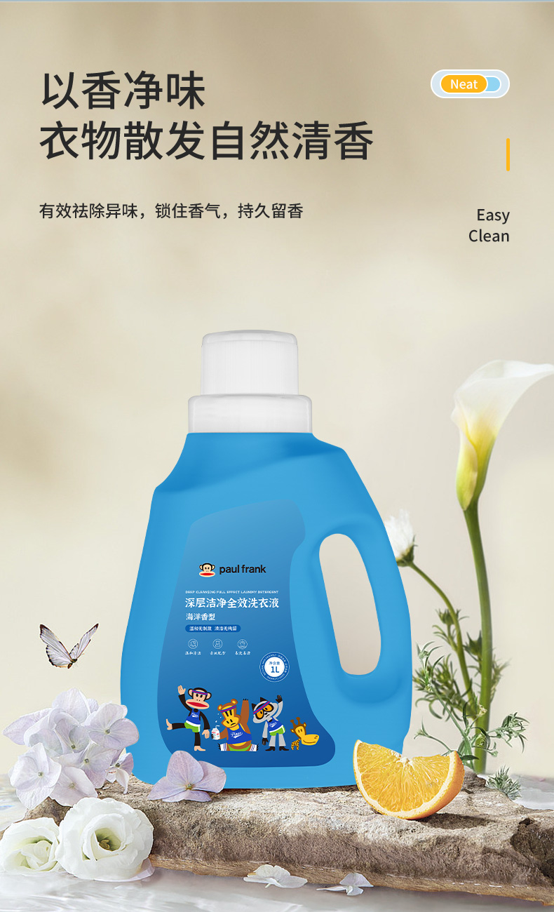 大嘴猴(Paul Frank)深层洁净全效洗衣液1kg(单位:瓶) 宝石蓝