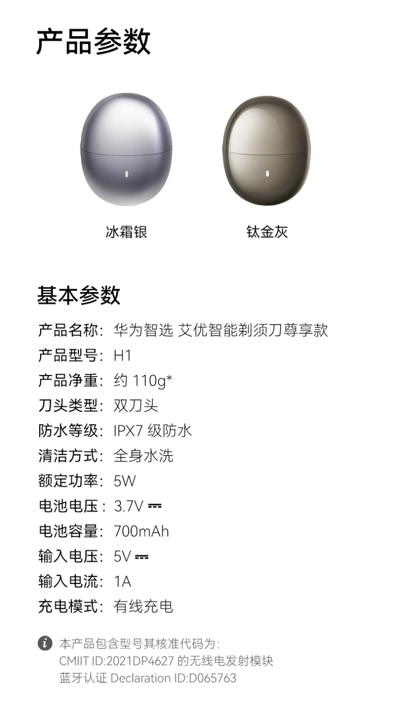 华为智选 艾优智能剃须刀 尊享款 H1 单位:个 珍珠灰
