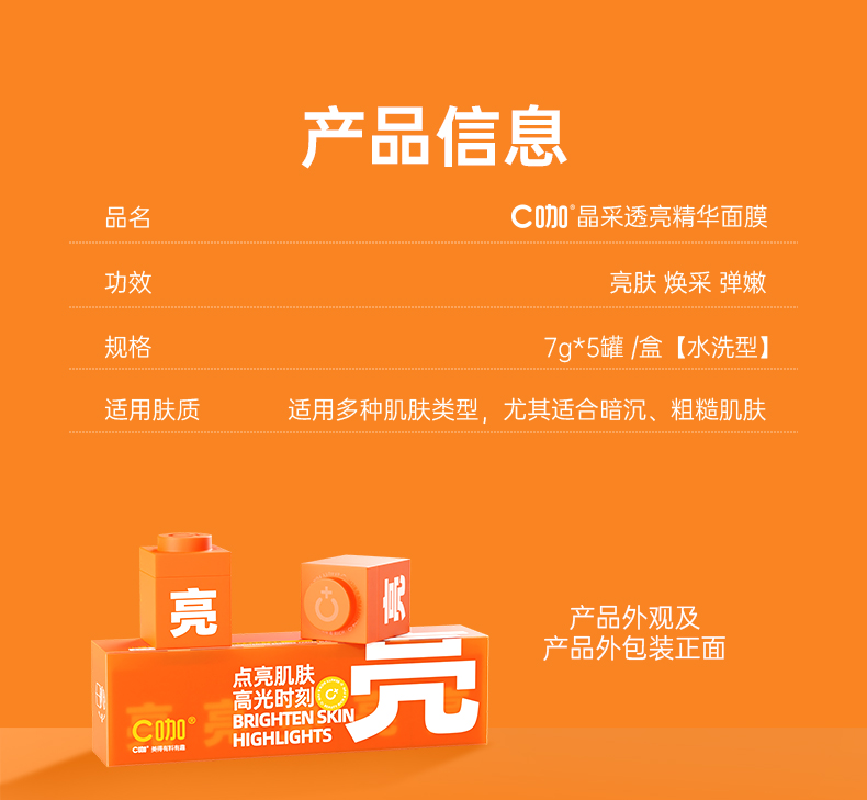 C咖晶采透亮精华面膜7g*5罐(单位:盒) 橙色