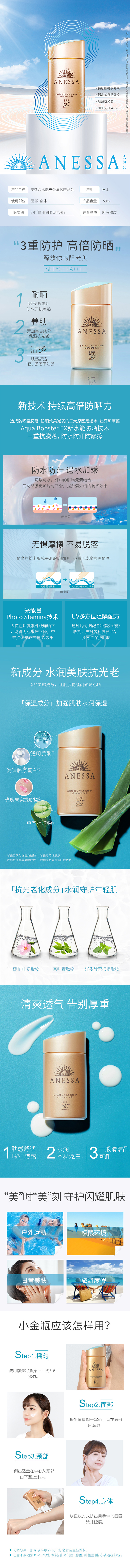资生堂ANESSA/安热沙水能户外清透防晒乳60ml(防晒霜 小金瓶 养肤 耐晒 ) 60ml
