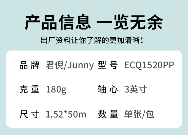 君倪(Junny)户外弱溶剂ECQ1520PP合成纸180g 1.52*50米/卷高清喷绘卷筒纸(单位:卷) 白色