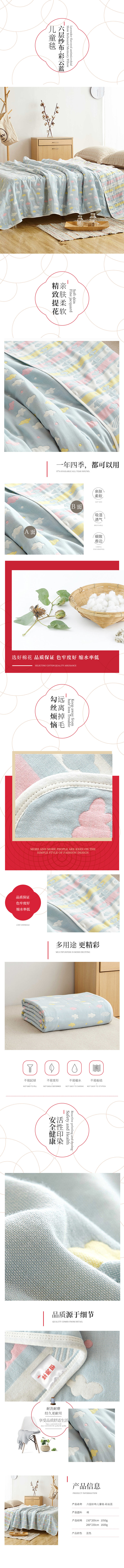 恒源祥六层纱布儿童毯-彩云蓝HYX070MJ(单位:床) 蓝色 单条装