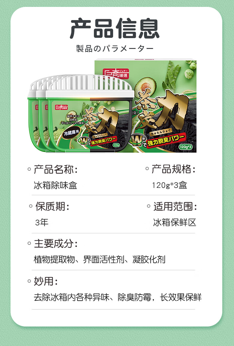 巨奇(JUQI)双色冰箱除味魔盒套装120g*3盒(单位:盒) 绿色