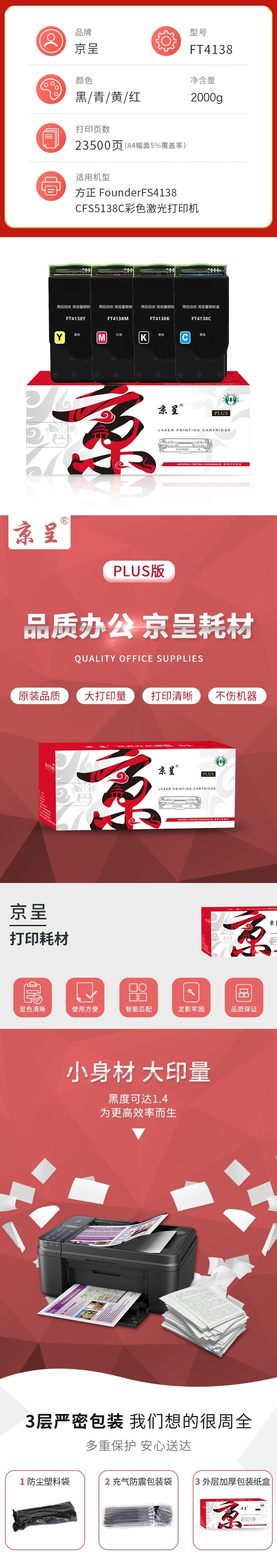 京呈 PLUS FT4138 粉盒 四色套装 适用方正FounderFS4138C/FS5138C 计价单位:套 混色