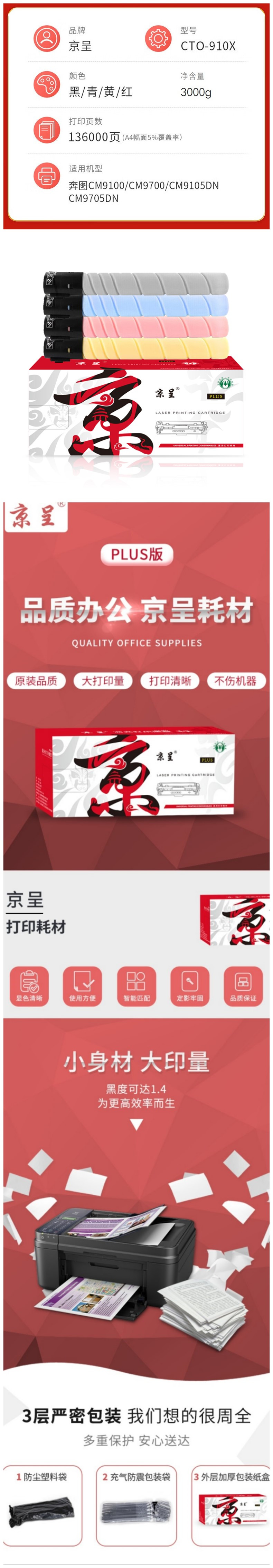 京呈 PLUS CTO-910X 粉盒 四色套装 适用奔图CM9100/CM9700/CM9105DNCM9705DN 计价单位:套 混色