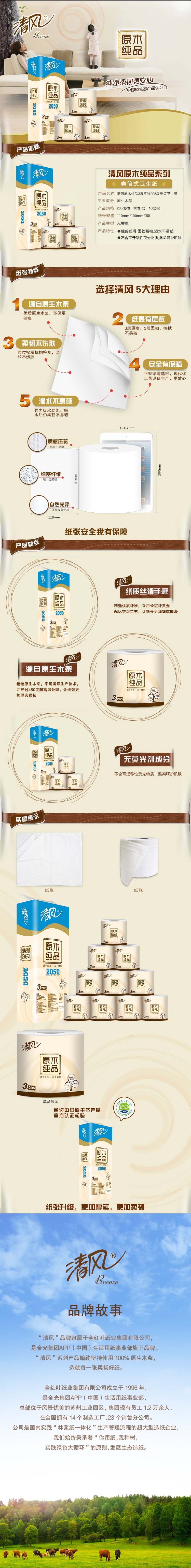 清风 B22AA1C 3 层205段*10 卷 原木纯品有芯卷纸 黄色(单位:提)