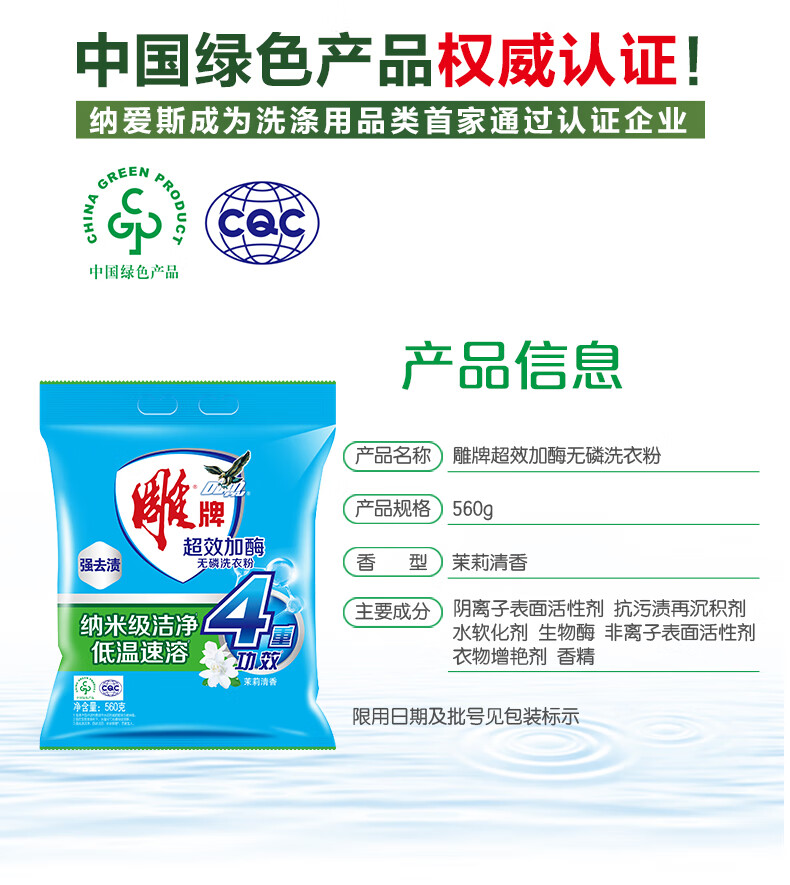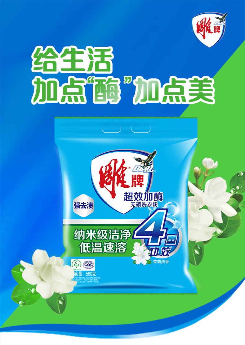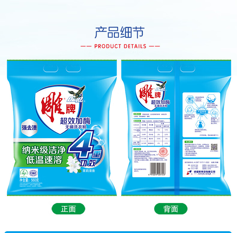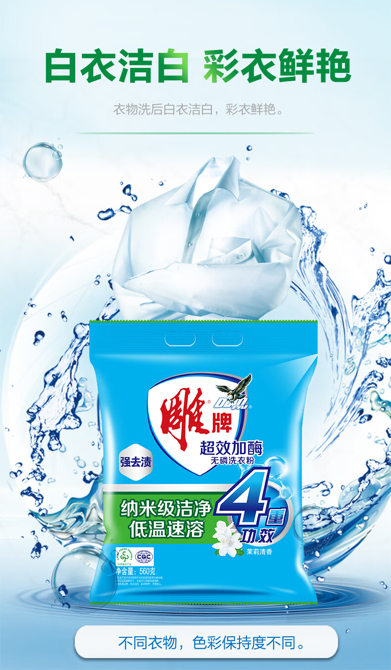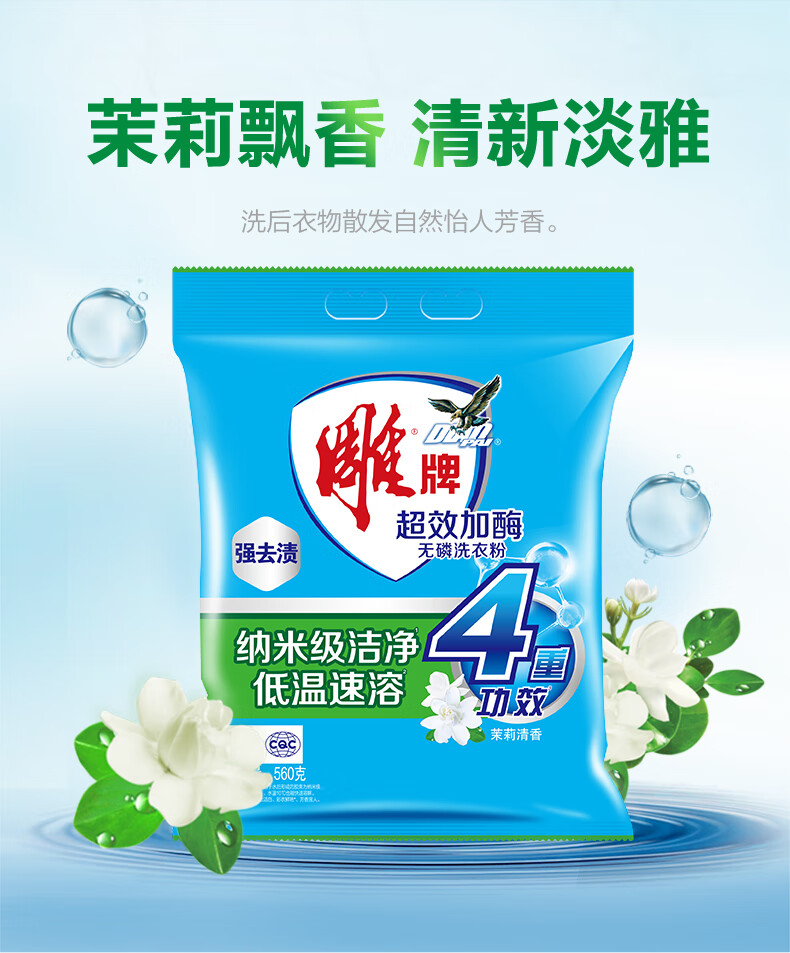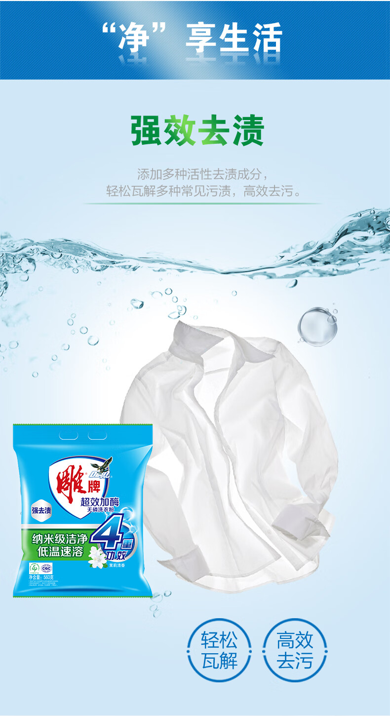 雕牌 洗衣粉茉莉清香 560g 超效加酶,强效去渍 水蓝色(单位:袋)