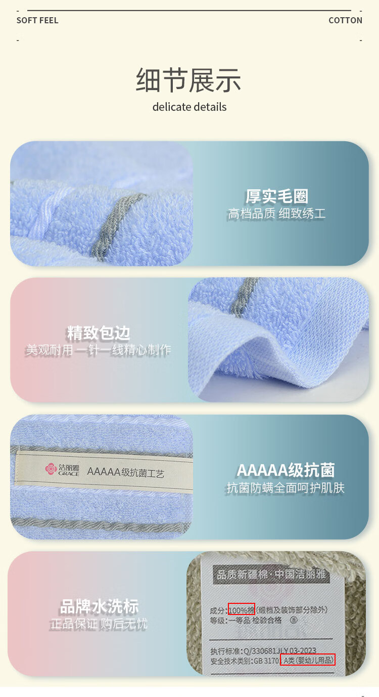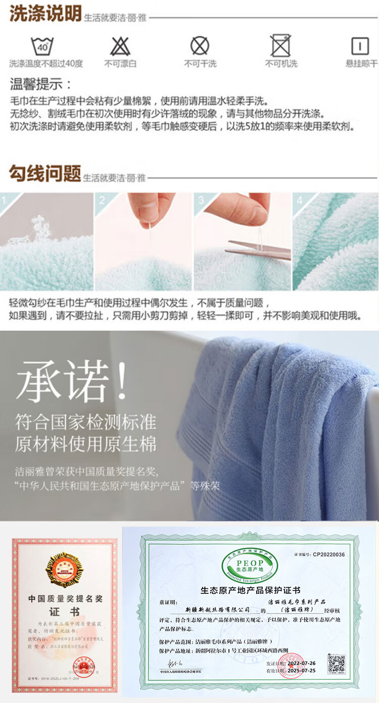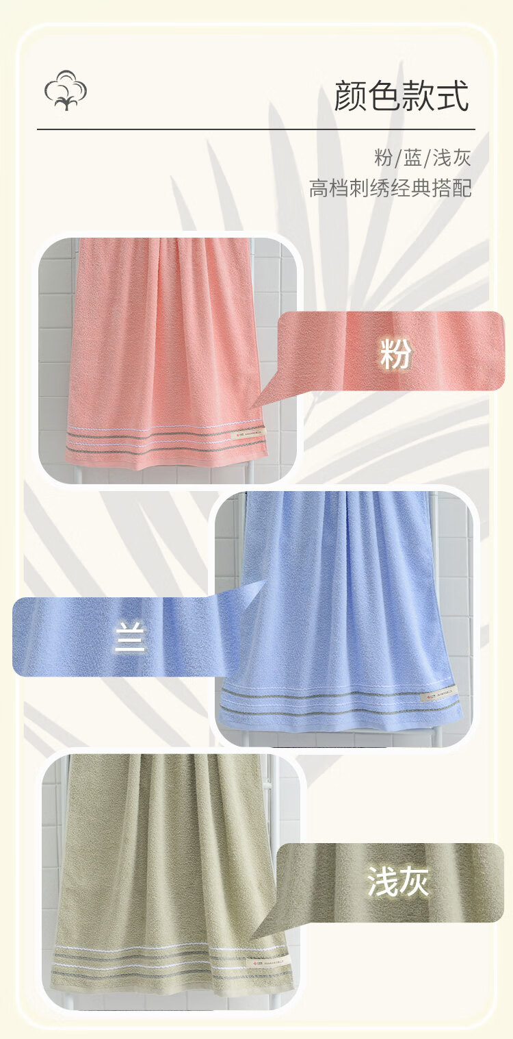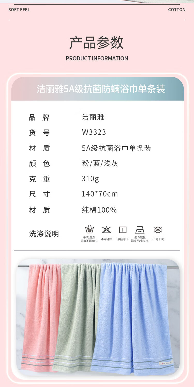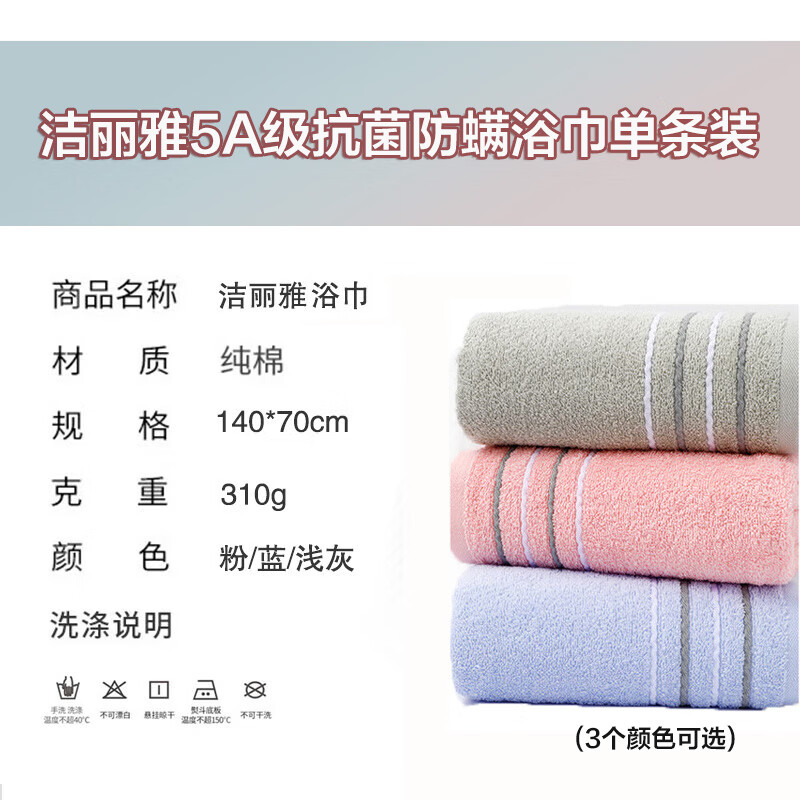 洁丽雅(Grace) 柔软速干抗菌通用浴巾 W3323 70*140cm/310g 混色(单位:条)