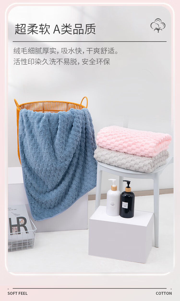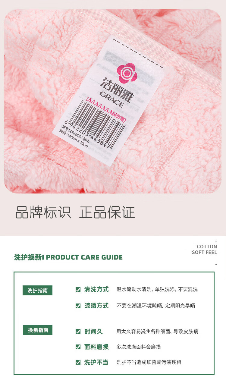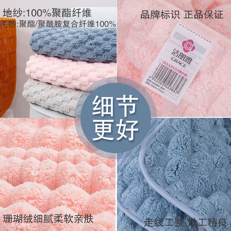 洁丽雅(Grace) 5A级抗菌浴巾 W3330 140*70cm*275g 混色(单位:条)