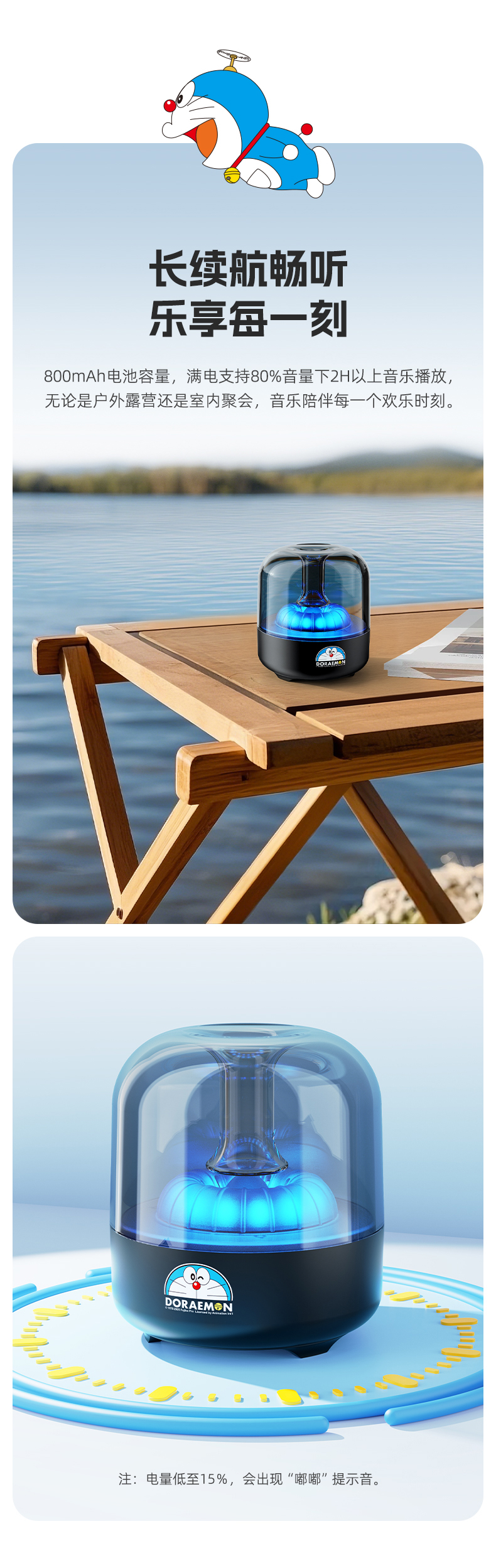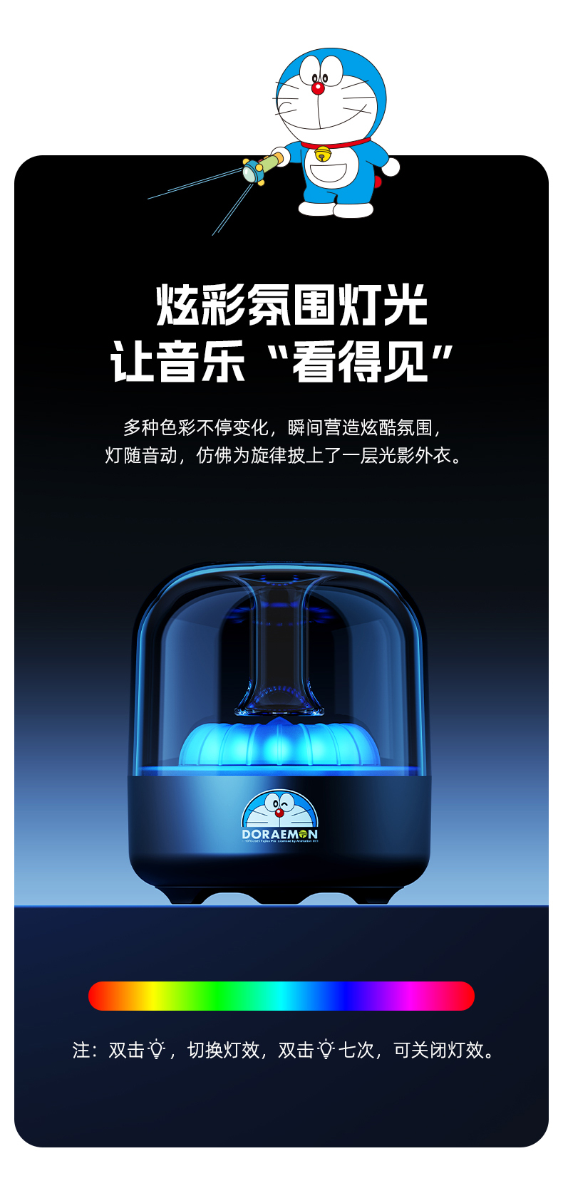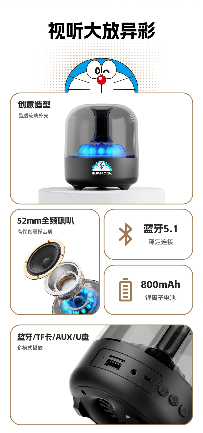 ROCK 哆啦A梦 琉璃发光音箱 RAU0793 电池容量:800mAh 黑色(单位:个)