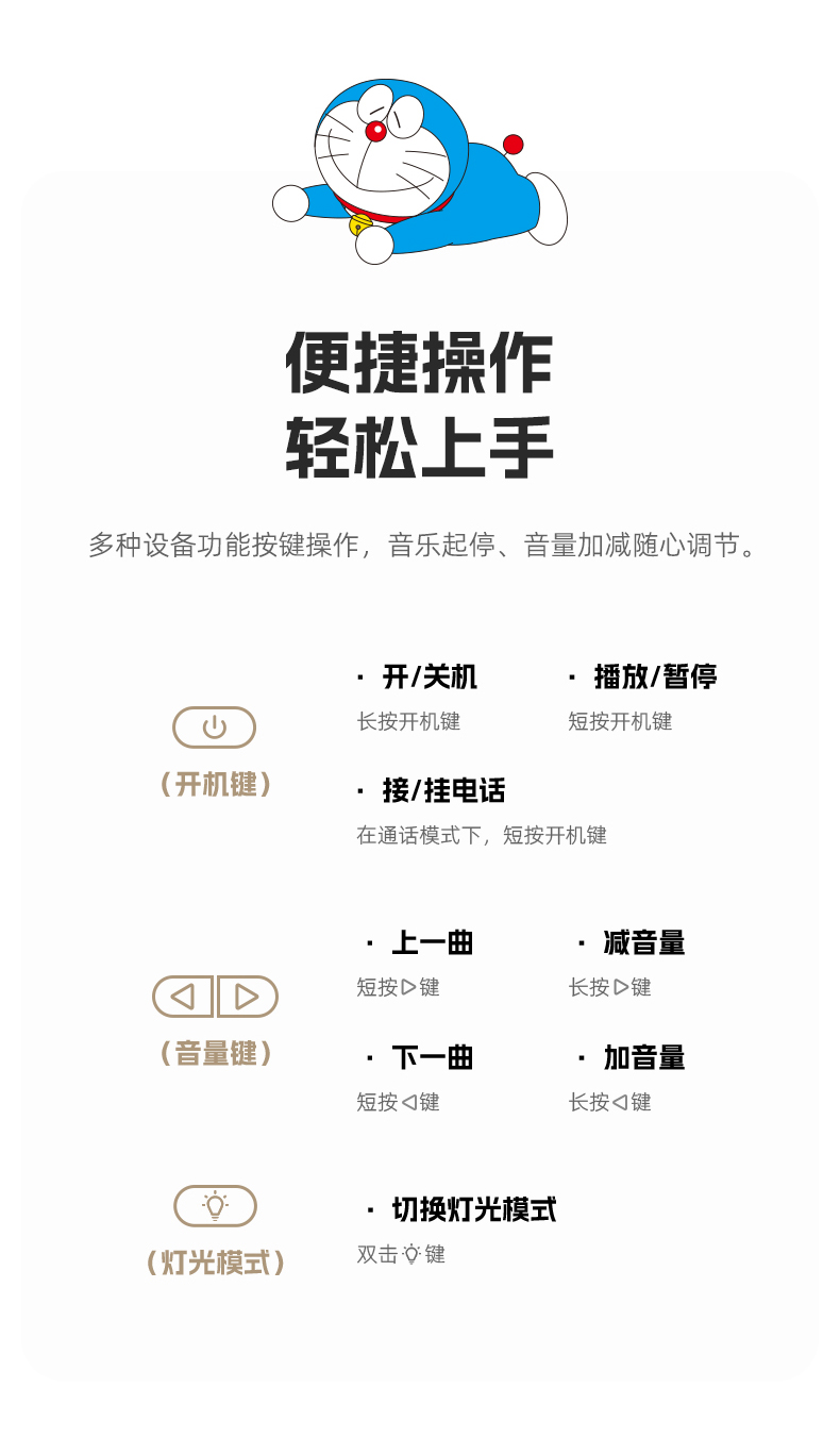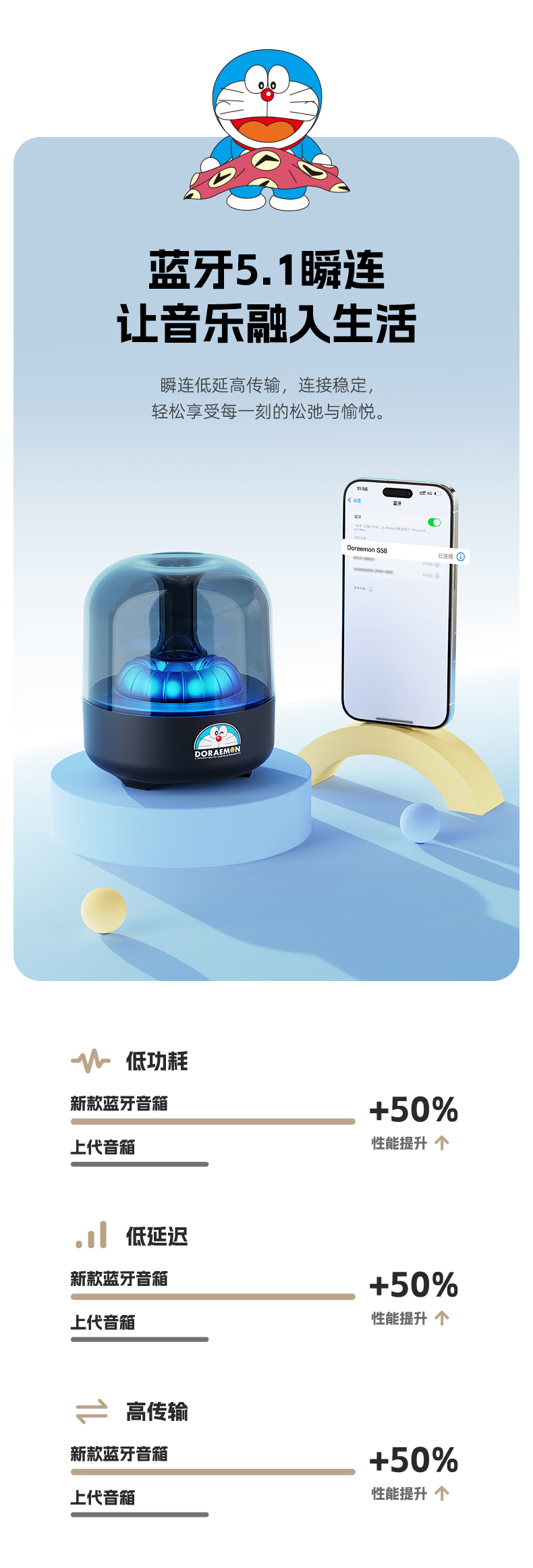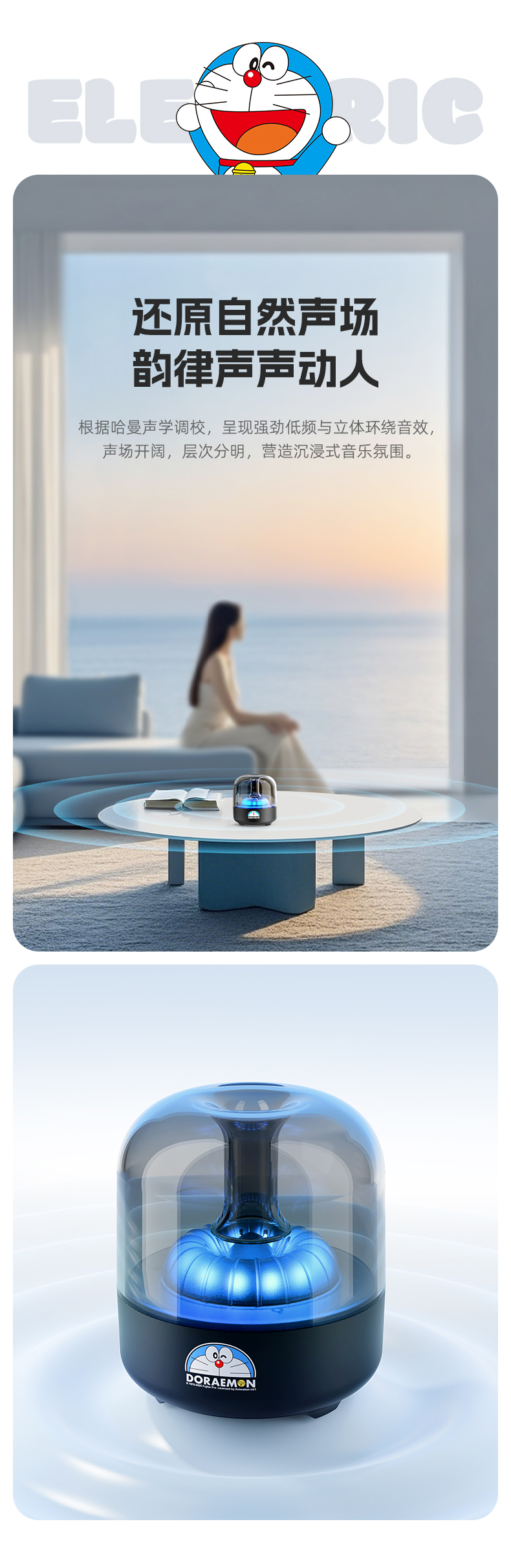 ROCK 哆啦A梦 琉璃发光音箱 RAU0793 电池容量:800mAh 黑色(单位:个)