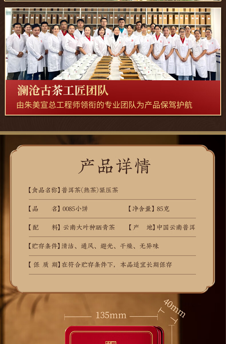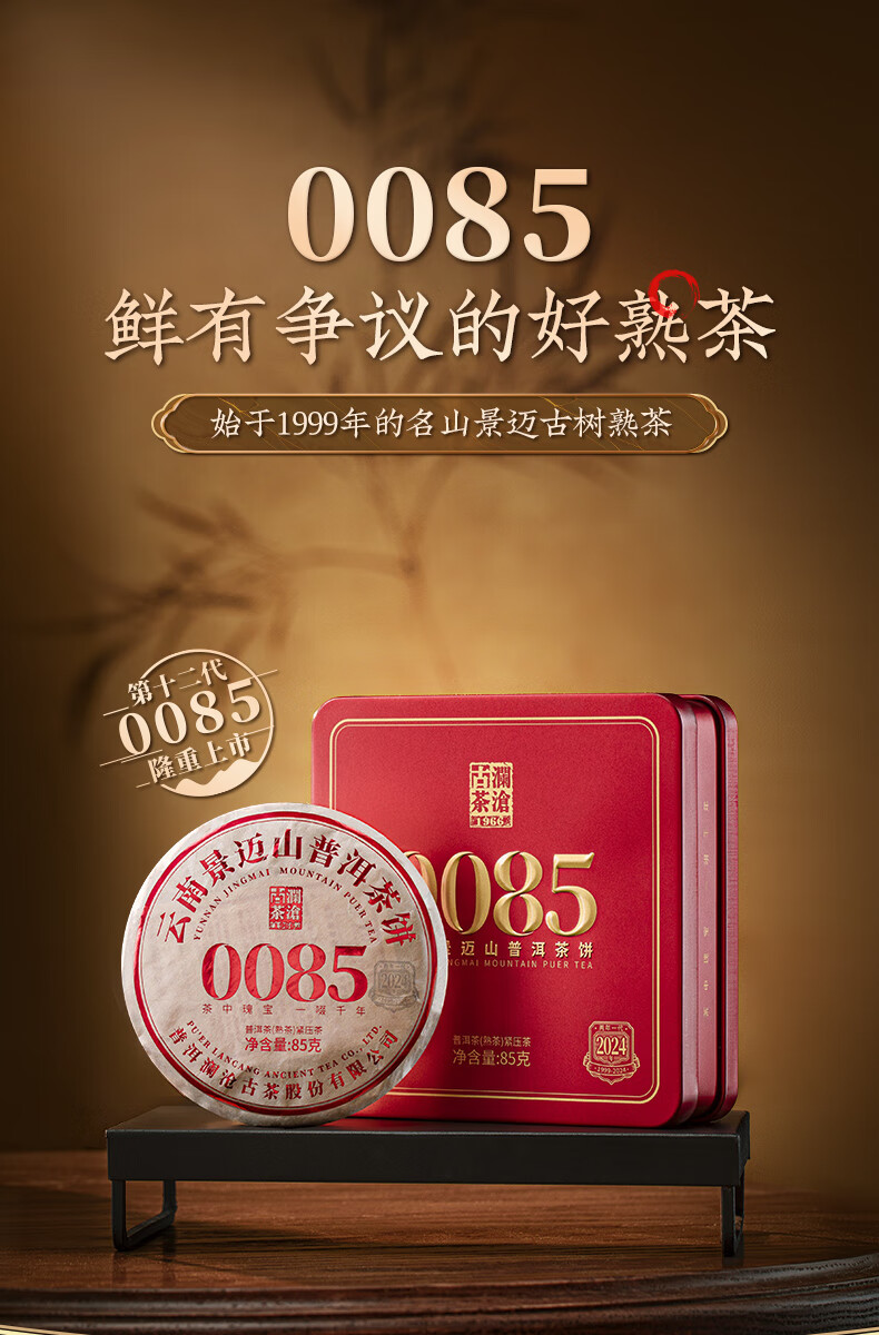 澜沧古茶 景迈山普洱茶饼 0085熟茶小饼 85g小胖饼盒装 红色(单位:盒)