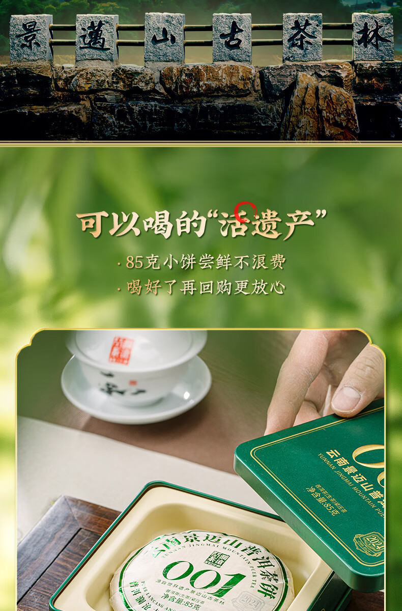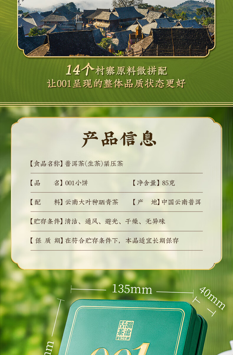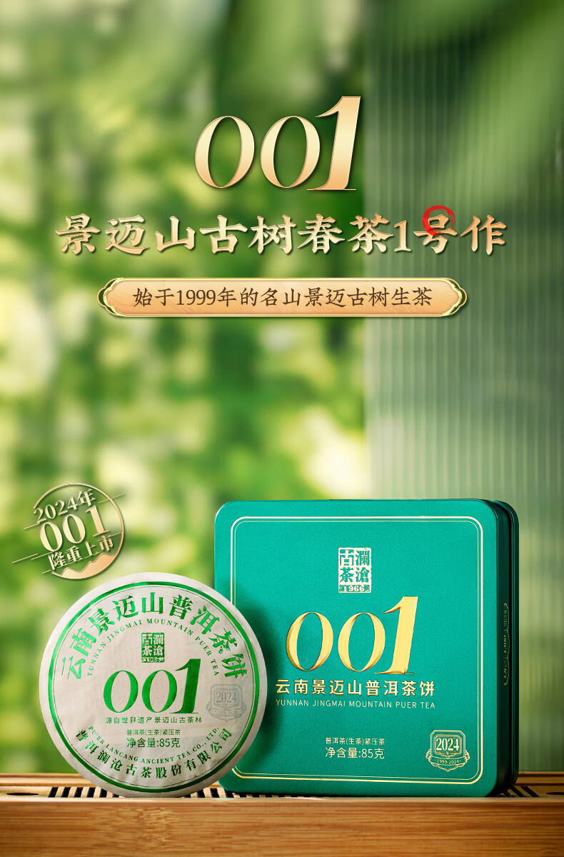 澜沧古茶 景迈山生茶饼 001古树普洱生茶 85g小胖盒装 绿色(单位:盒)