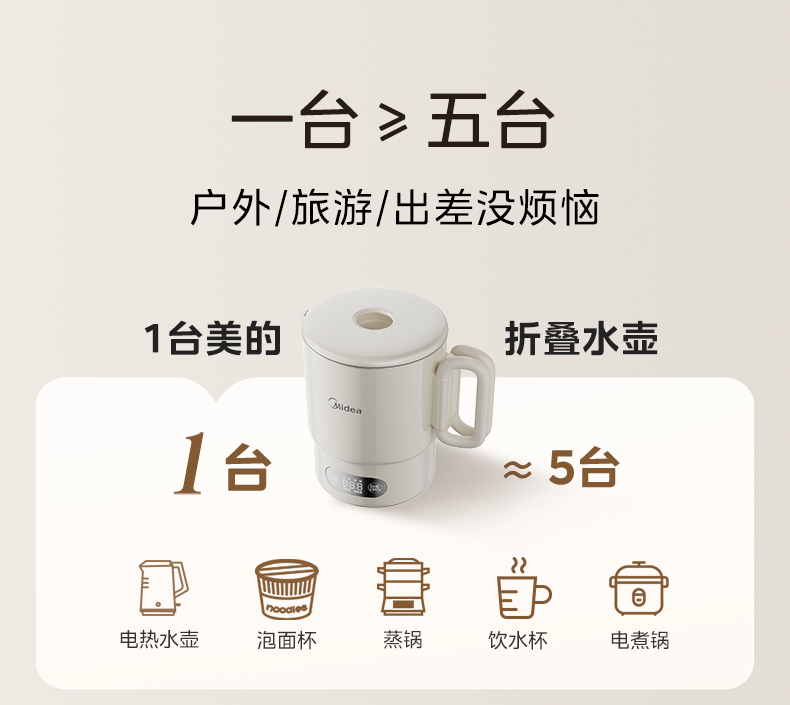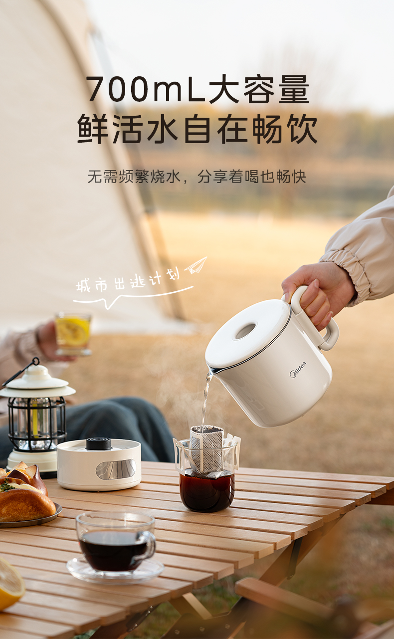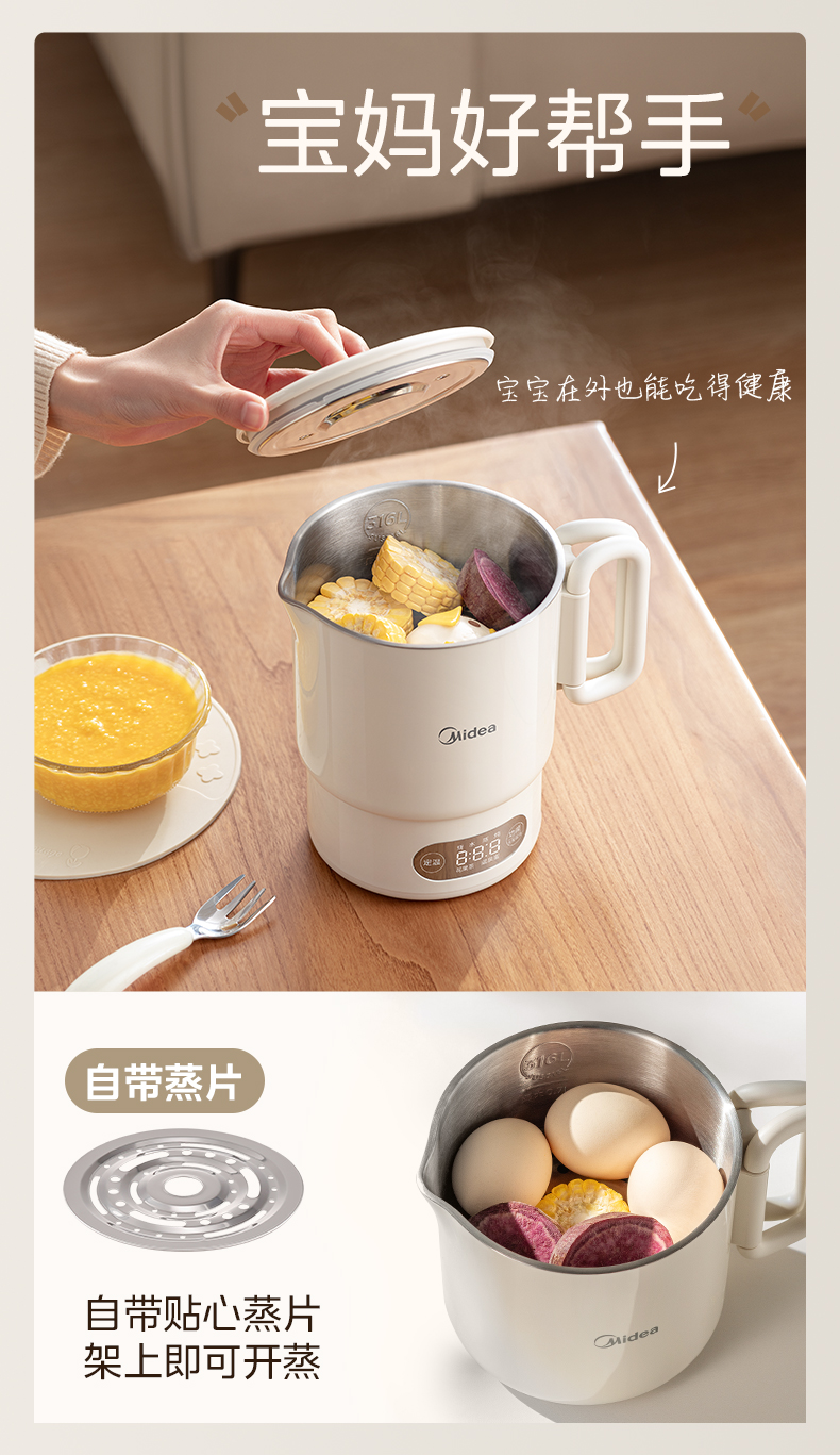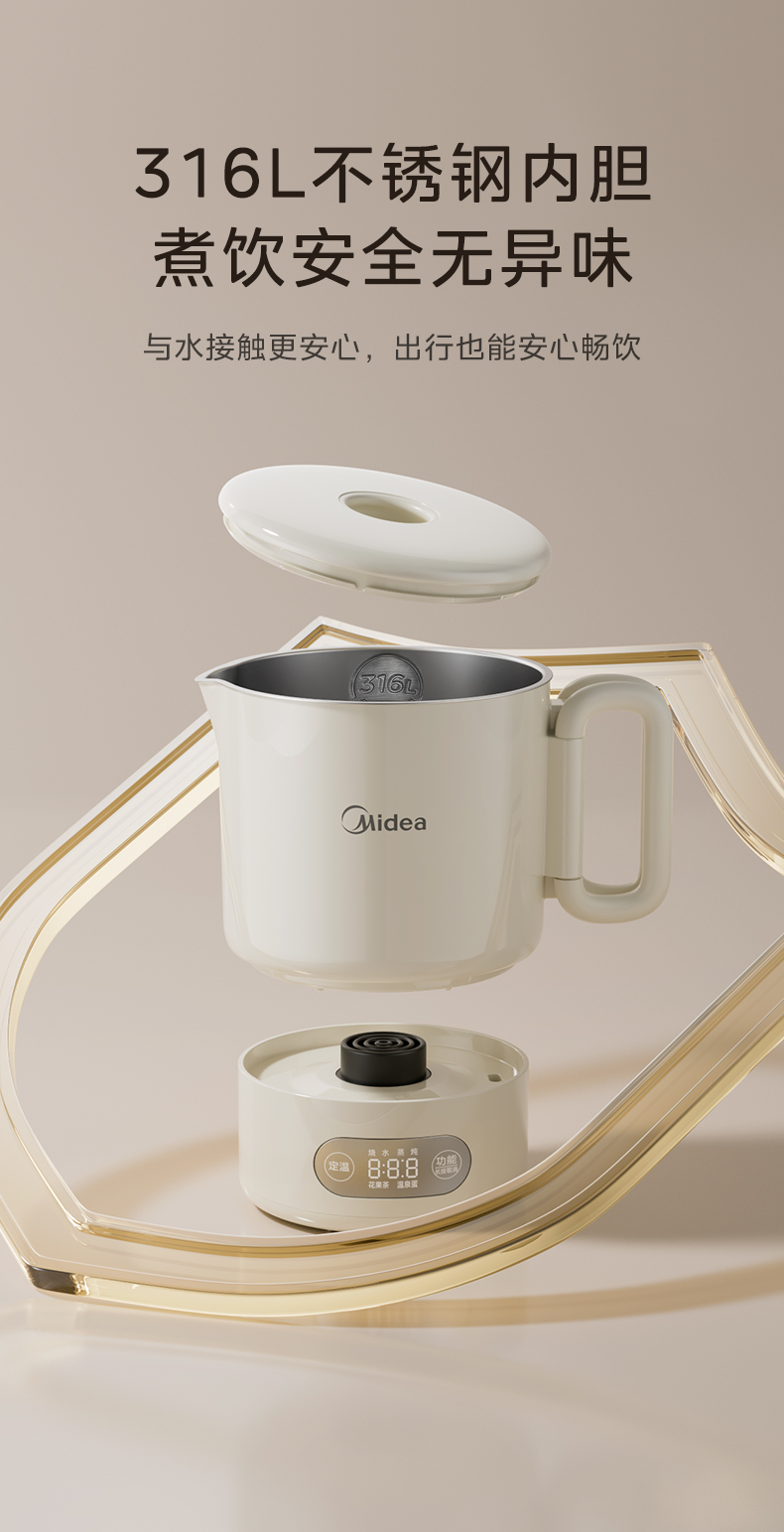 美的(Midea) 迷你便携式烧水杯 电水壶 MK-SH07S105 0.7L 白色(单位:台)