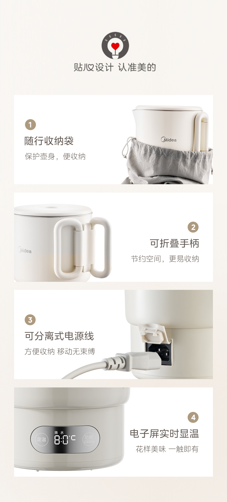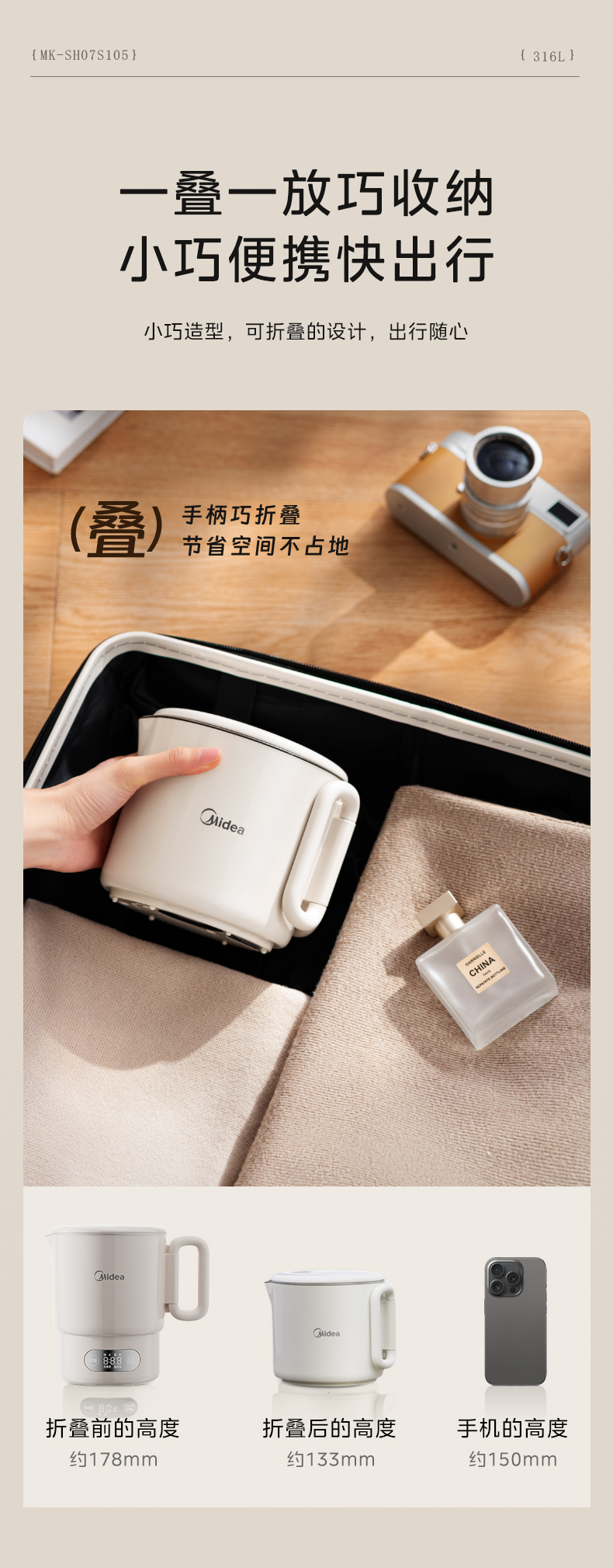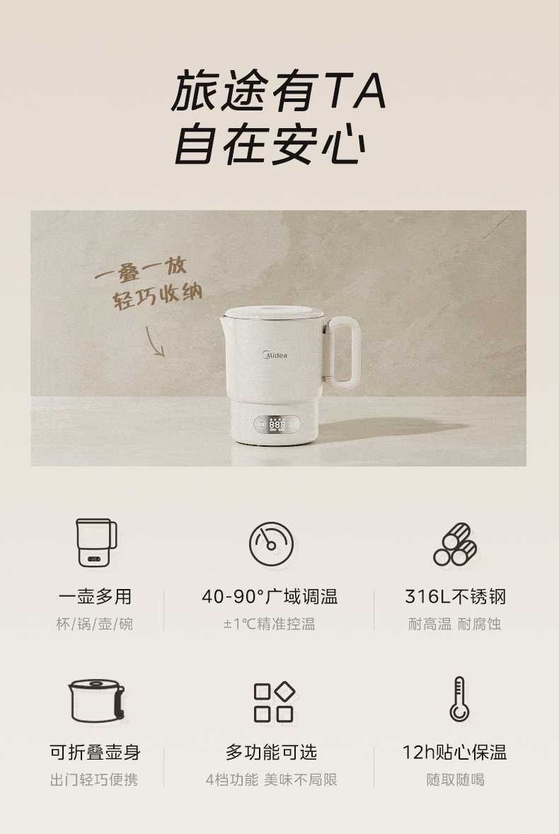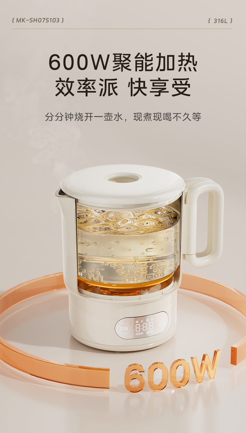 美的(Midea) 迷你便携式烧水杯 电水壶 MK-SH07S105 0.7L 白色(单位:台)