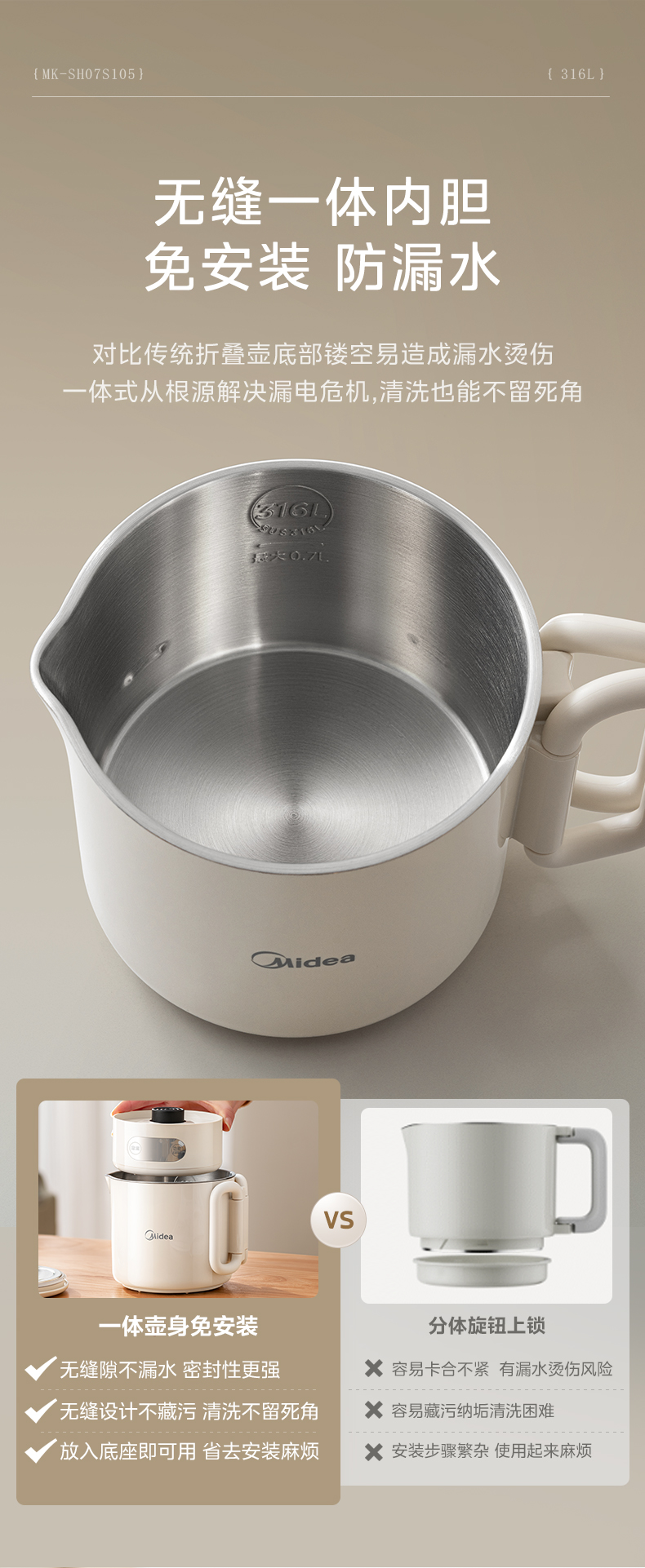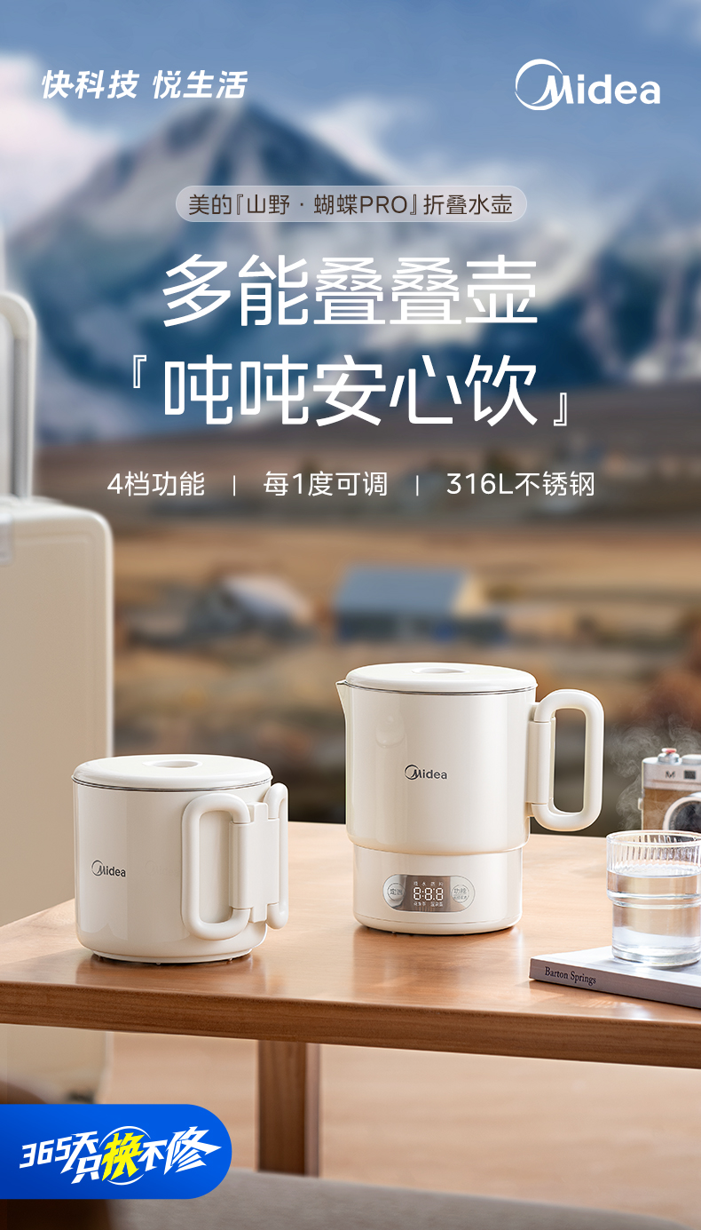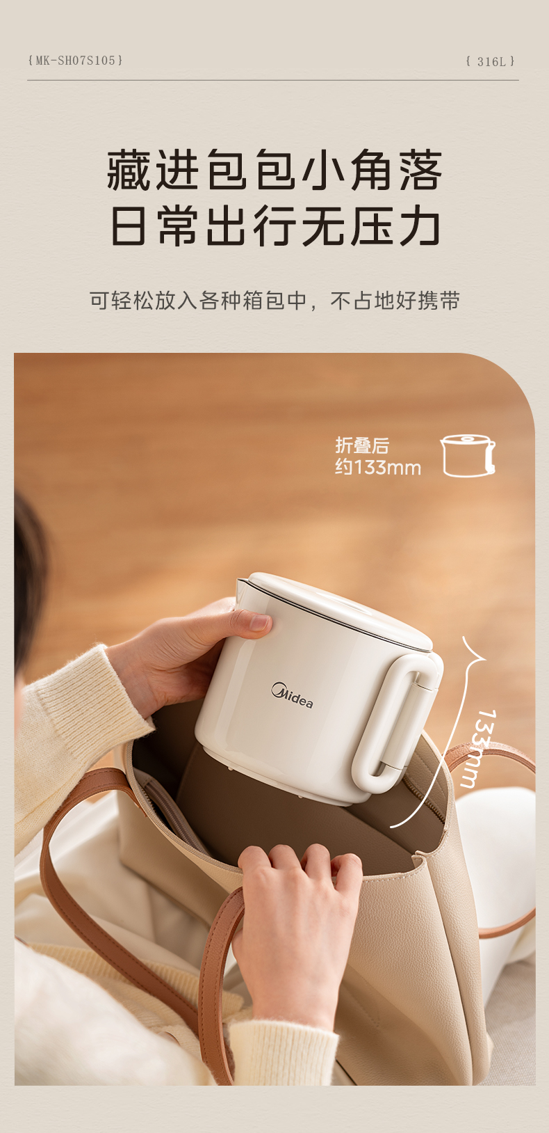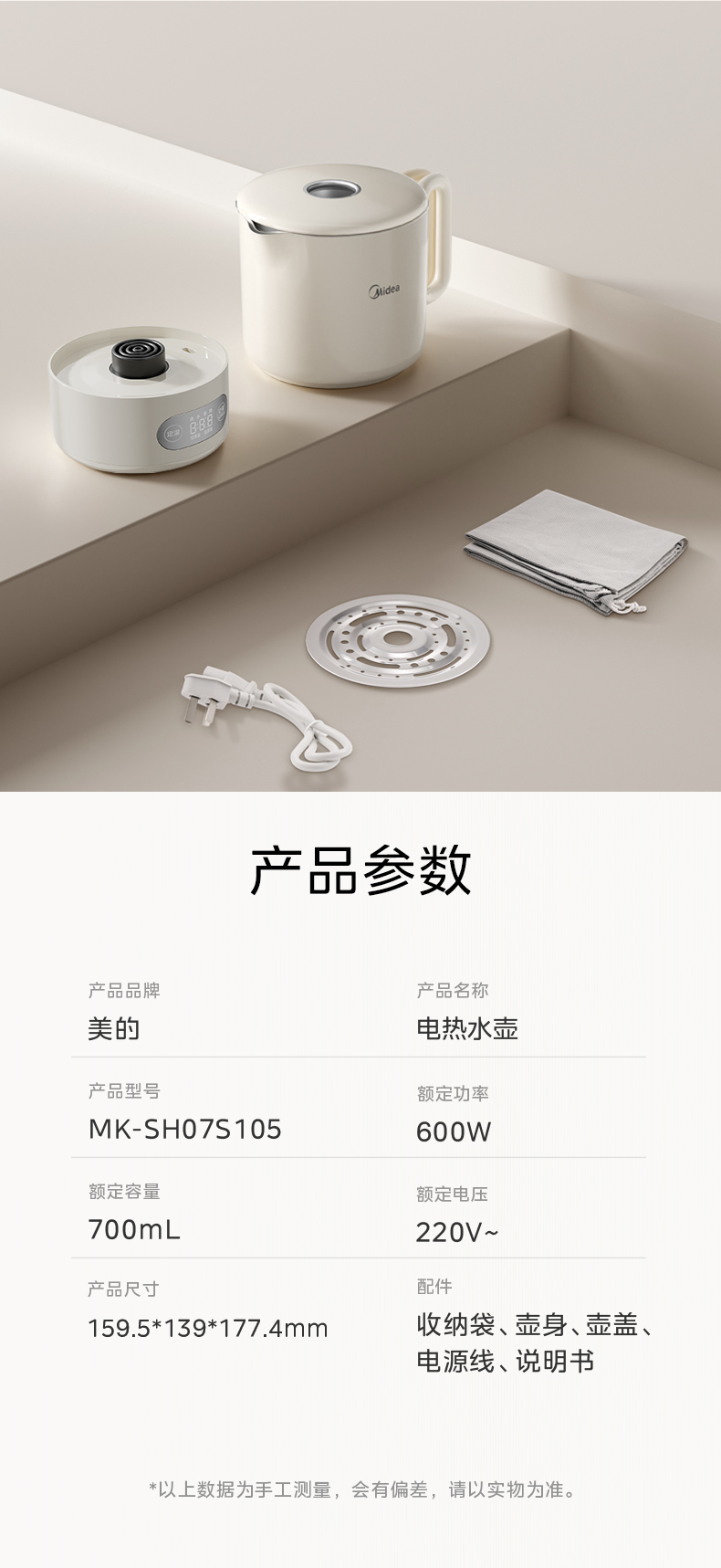 美的(Midea) 迷你便携式烧水杯 电水壶 MK-SH07S105 0.7L 白色(单位:台)