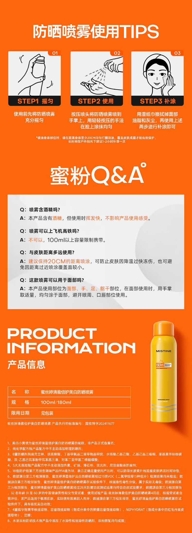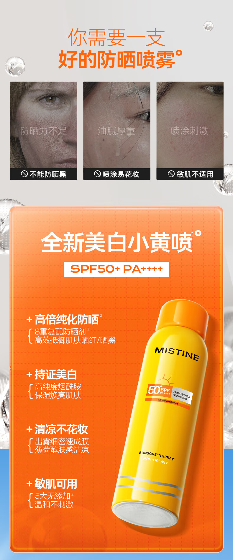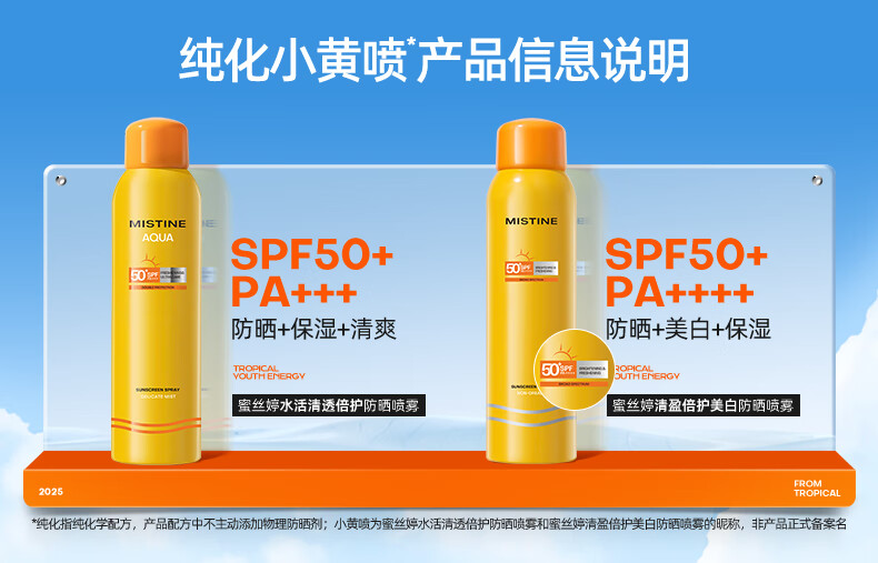 蜜丝婷(Mistine) 小黄喷 防晒喷雾 180ml 黄色(单位:瓶)