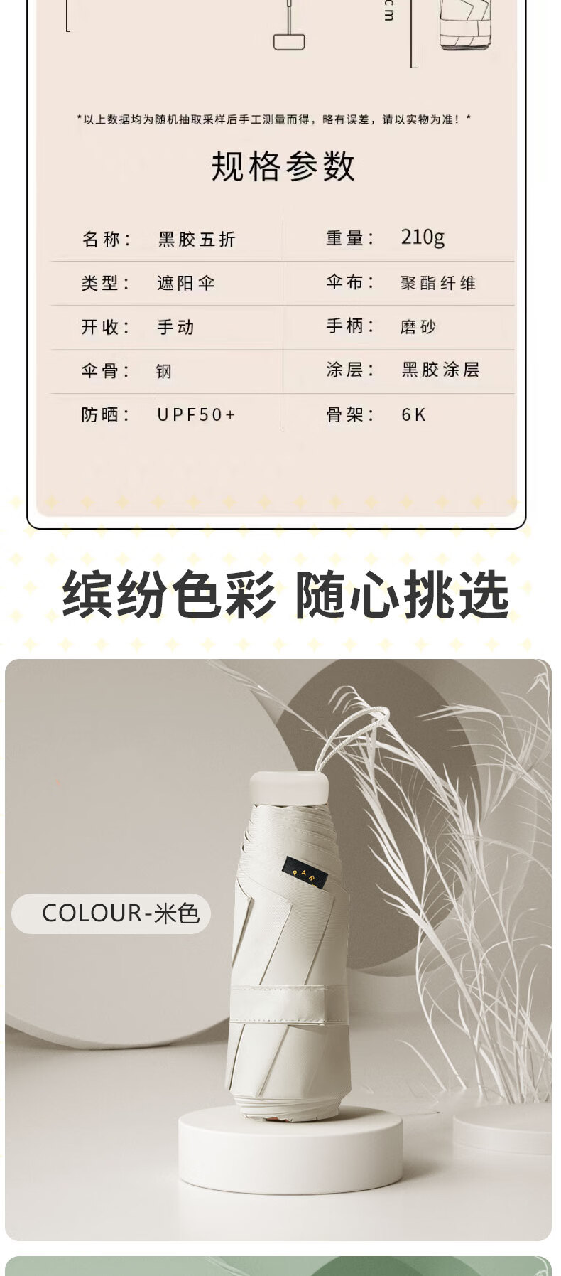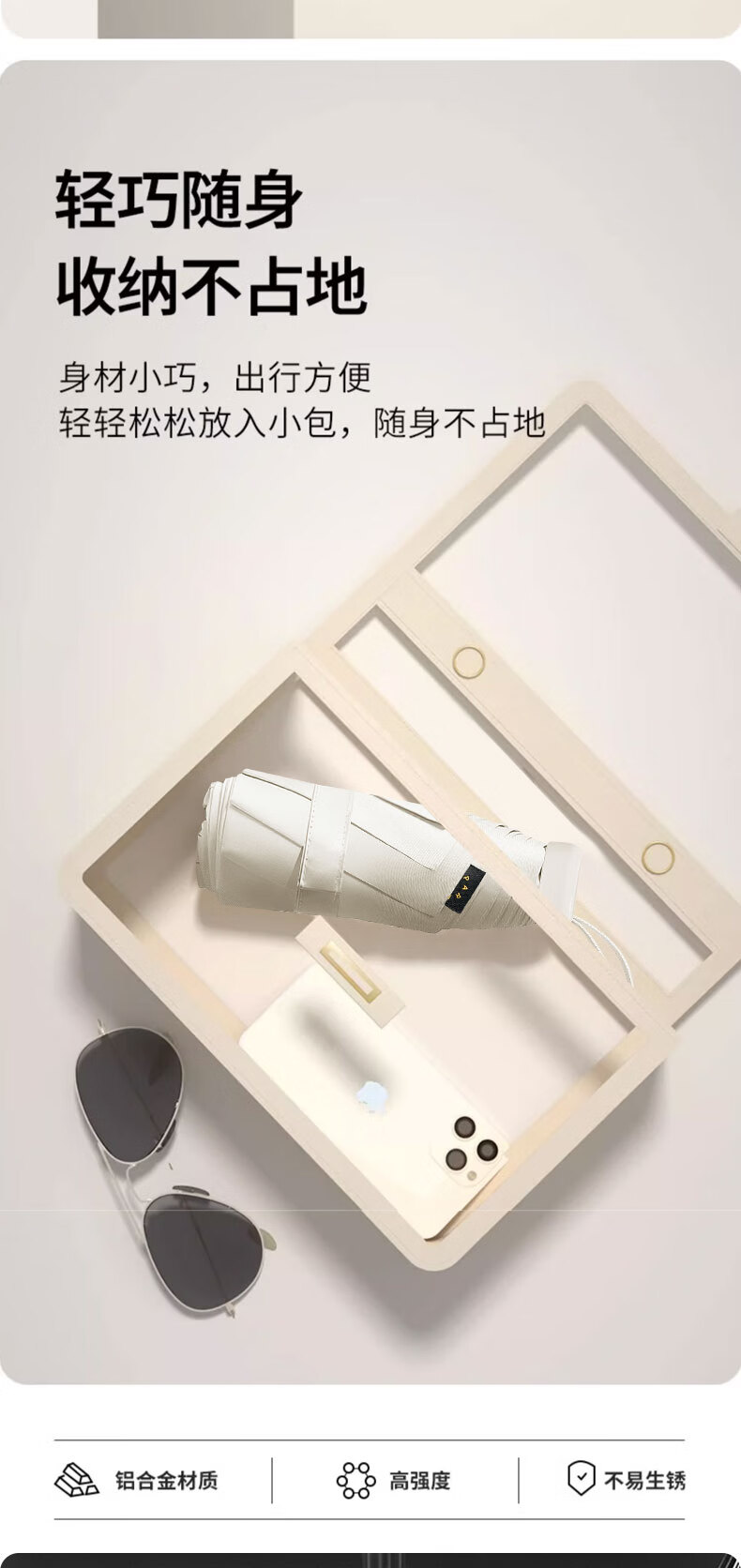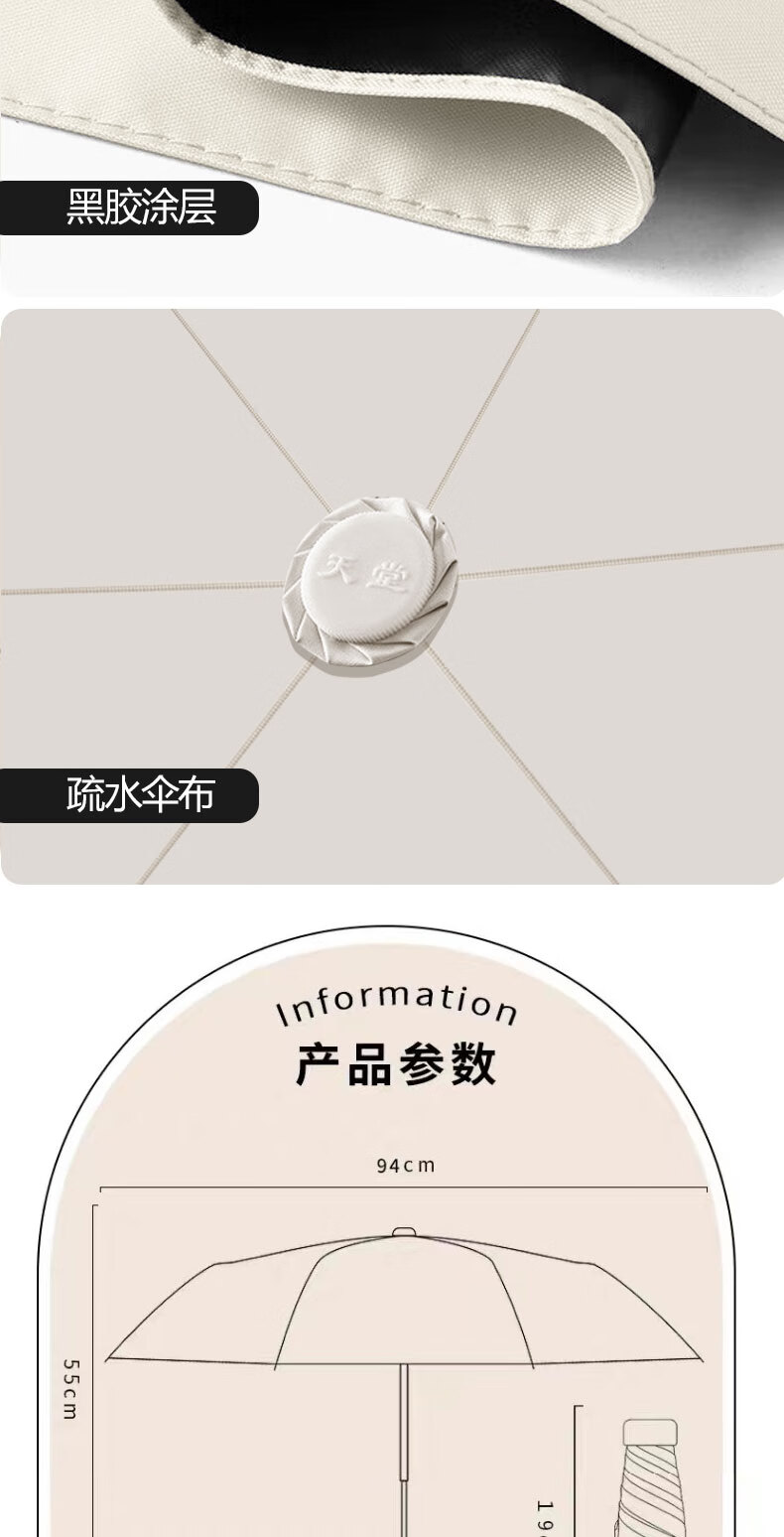 天堂 五折迷你口袋胶囊伞 50752EXJ 54cmX6骨 甘酪白(单位:把)