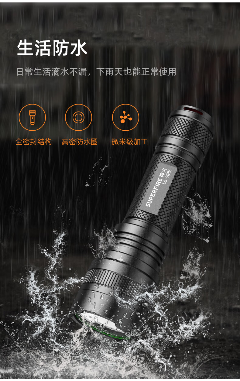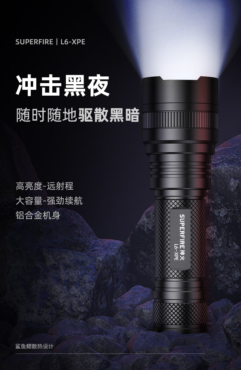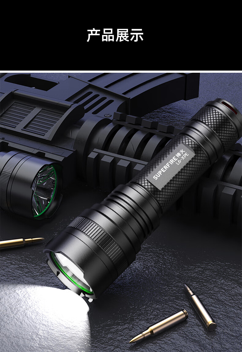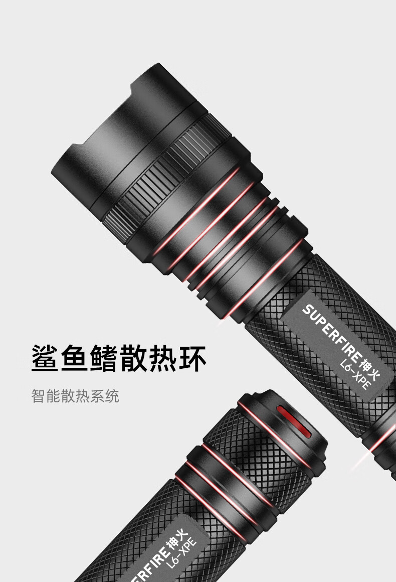 神火 手电筒 充电式 5档 5-10h L6-XPE 5W 黑色(单位:个)