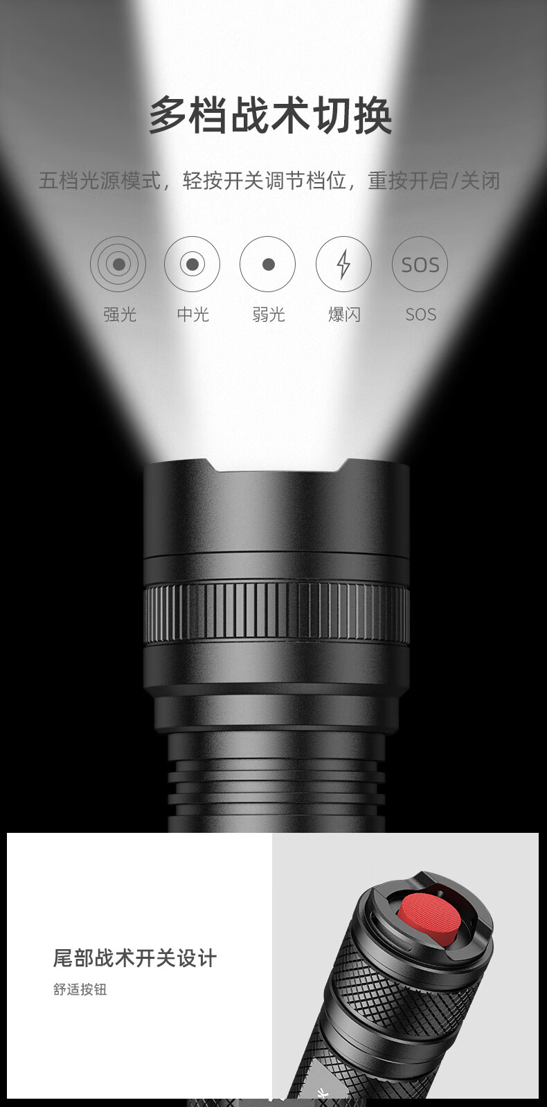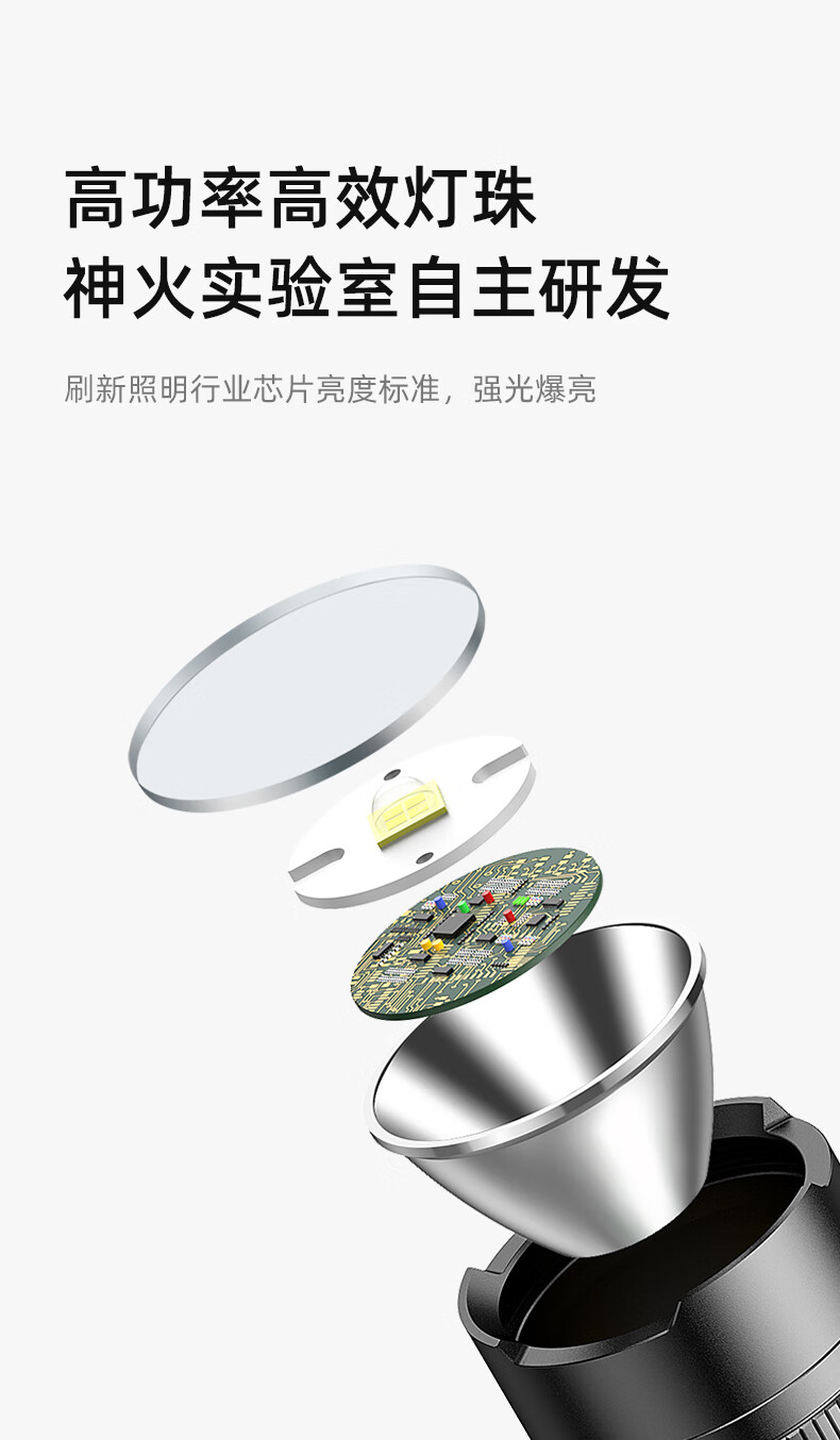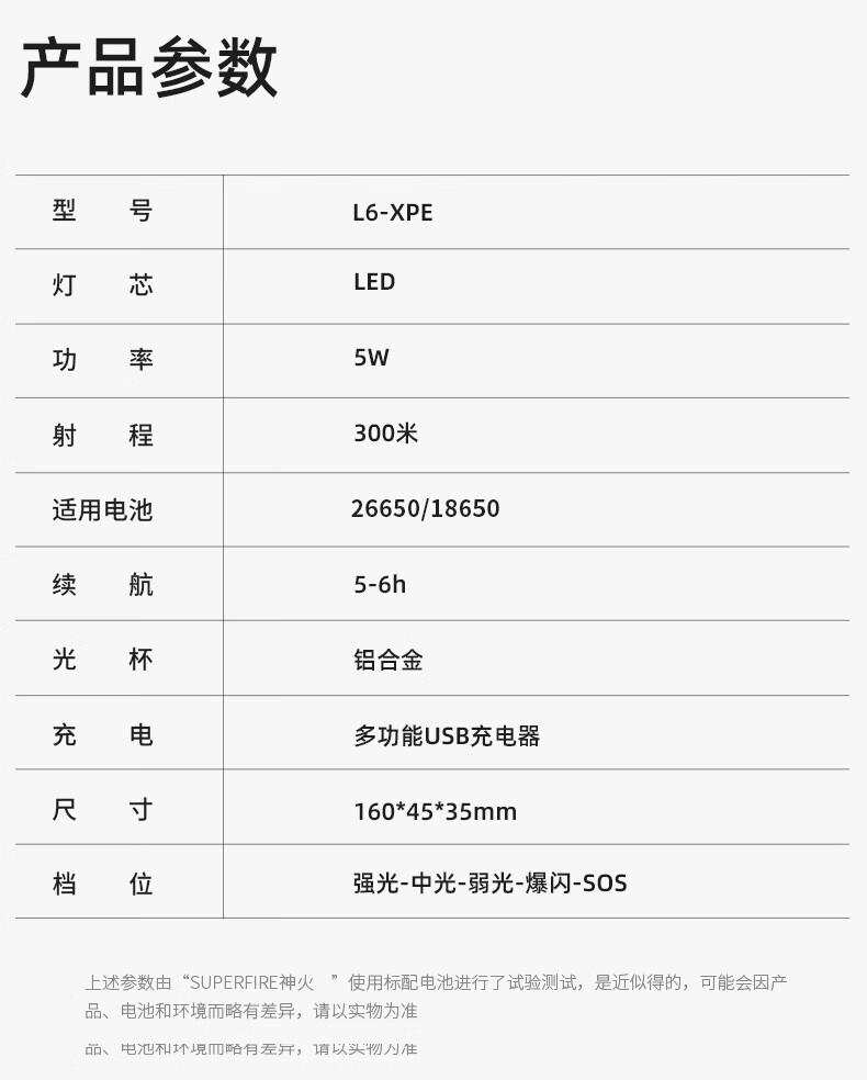 神火 手电筒 充电式 5档 5-10h L6-XPE 5W 黑色(单位:个)