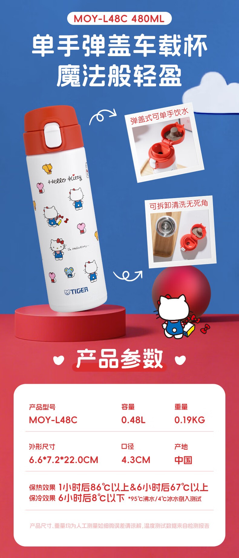 虎牌(TIGER) 保温杯 MOY-L48C-Hello Kitty 480ml 钢琴白(单位:个)