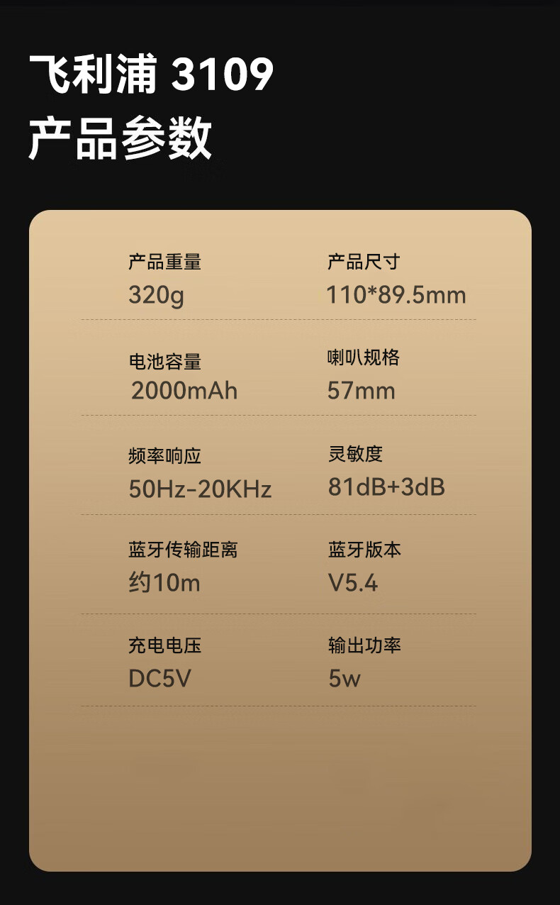 飞利浦(PHILIPS) 蓝牙音响 TAS3109 蓝牙5.4 本白色(单位:个)