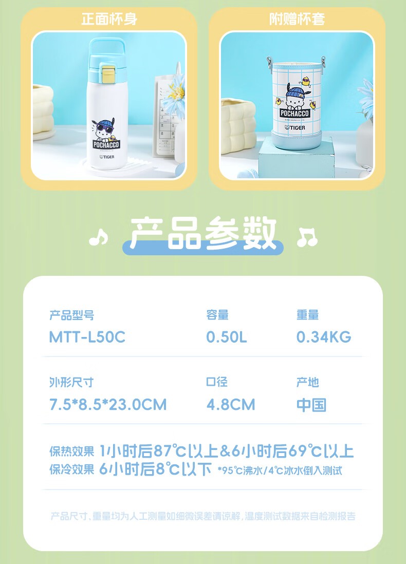 虎牌(TIGER) 保温杯 MTT-L50C-帕恰狗 500ml 天蓝色(单位:个)