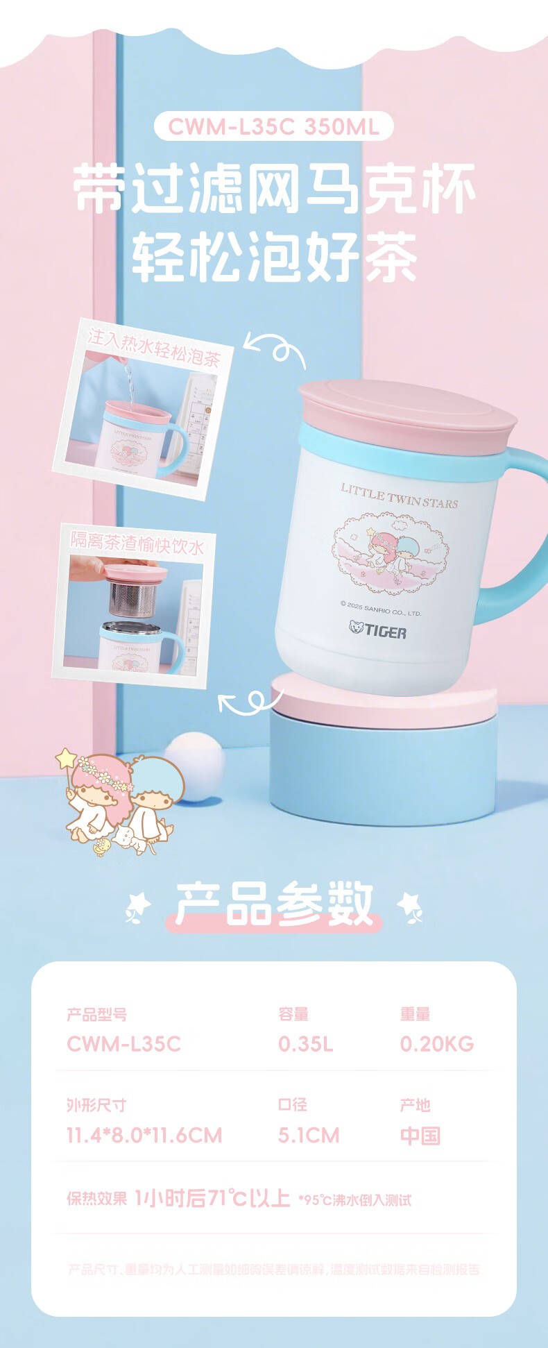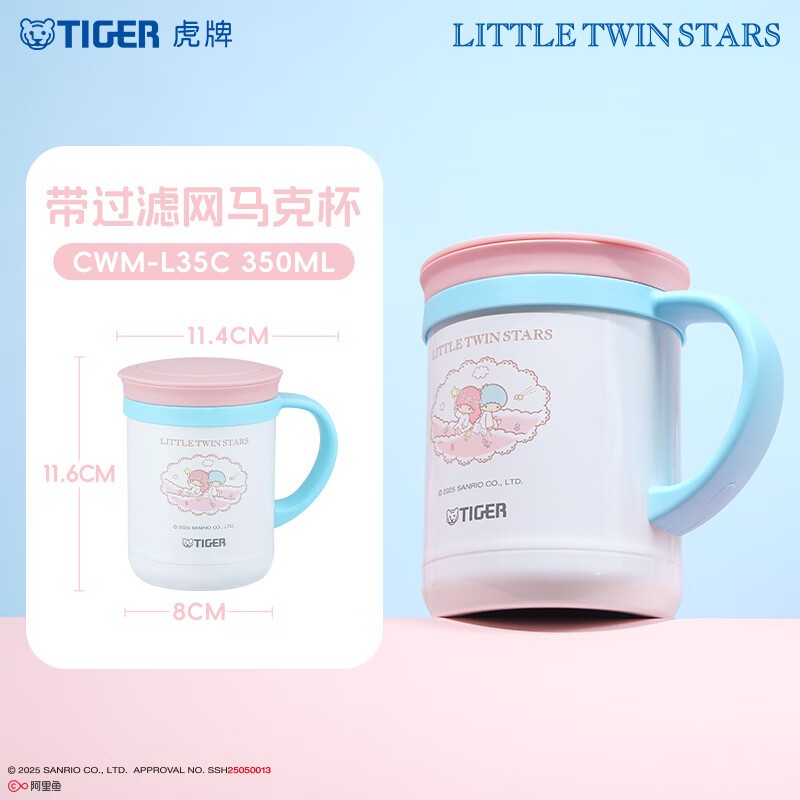 虎牌(TIGER) 不锈钢保温杯 CWM-L35C-双子星 350ml 粉色(单位:个)