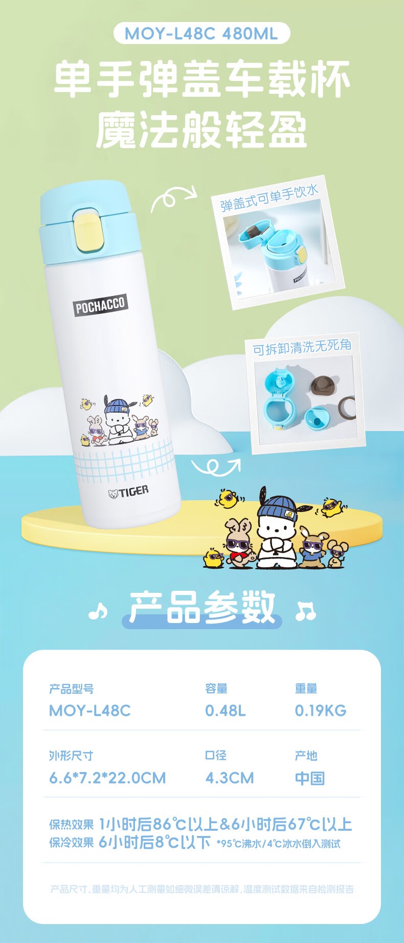 虎牌(TIGER) 不锈钢保温杯 MOY-L48C-帕恰狗 480ml 天蓝色(单位:个)