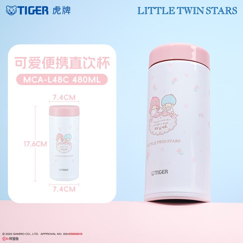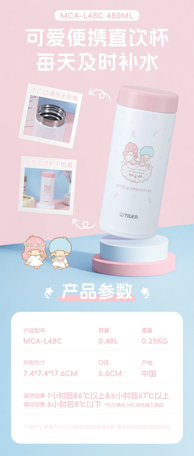 虎牌(TIGER) 不锈钢保温杯 MCA-L48C-双子星 480ml 粉色(单位:个)