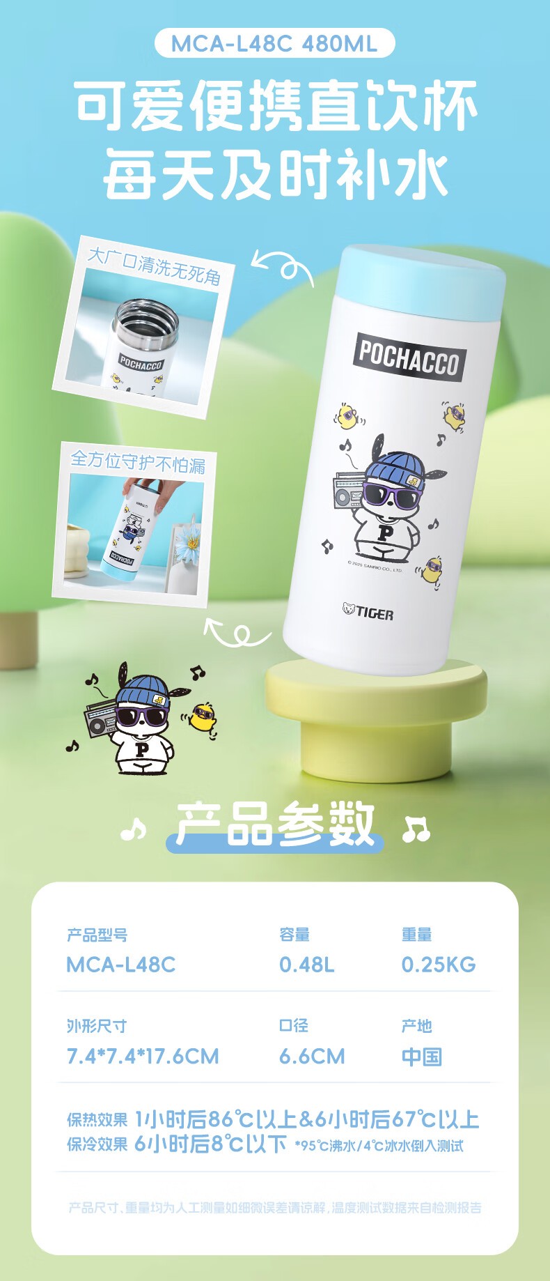 虎牌(TIGER) 不锈钢保温杯 MCA-L48C-帕恰狗 480ml 天蓝色(单位:个)