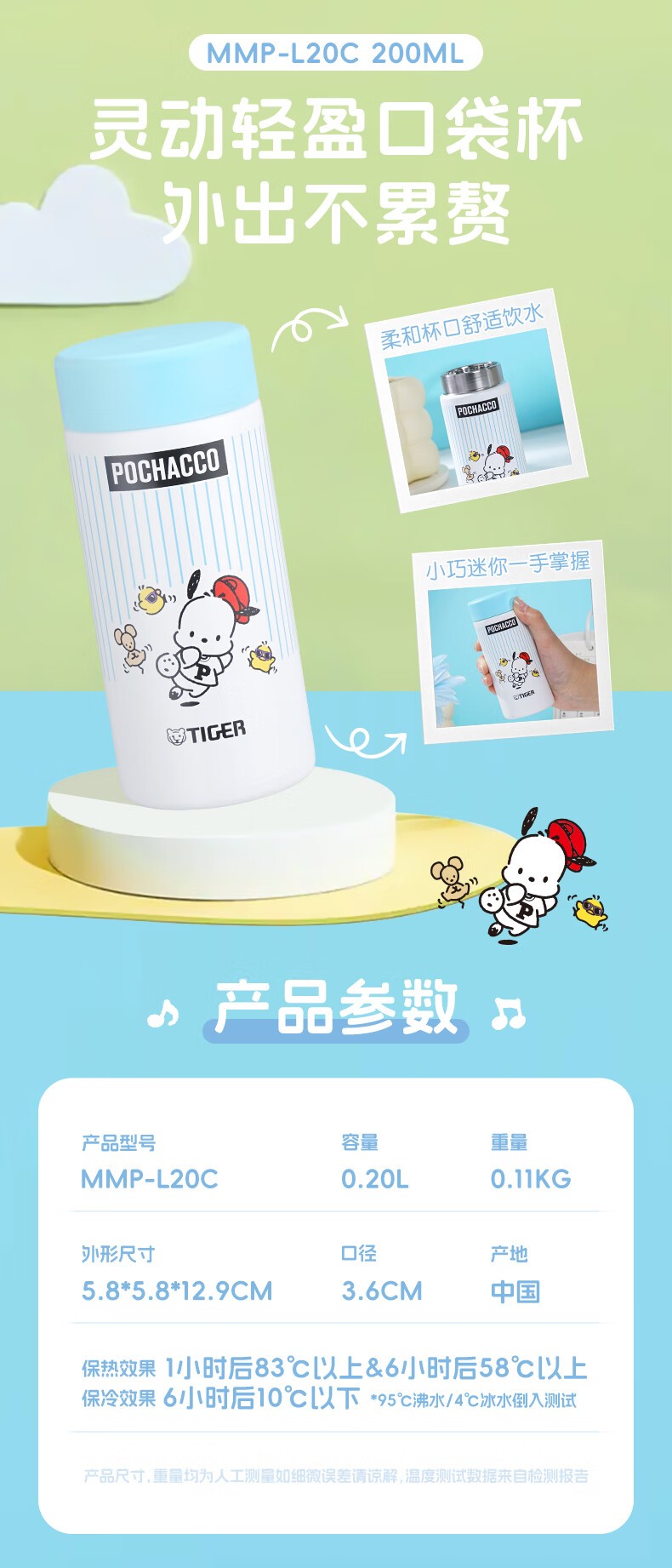 虎牌(TIGER) 不锈钢保温杯 MMP-L20C-帕恰狗 200ml 天蓝色(单位:个)