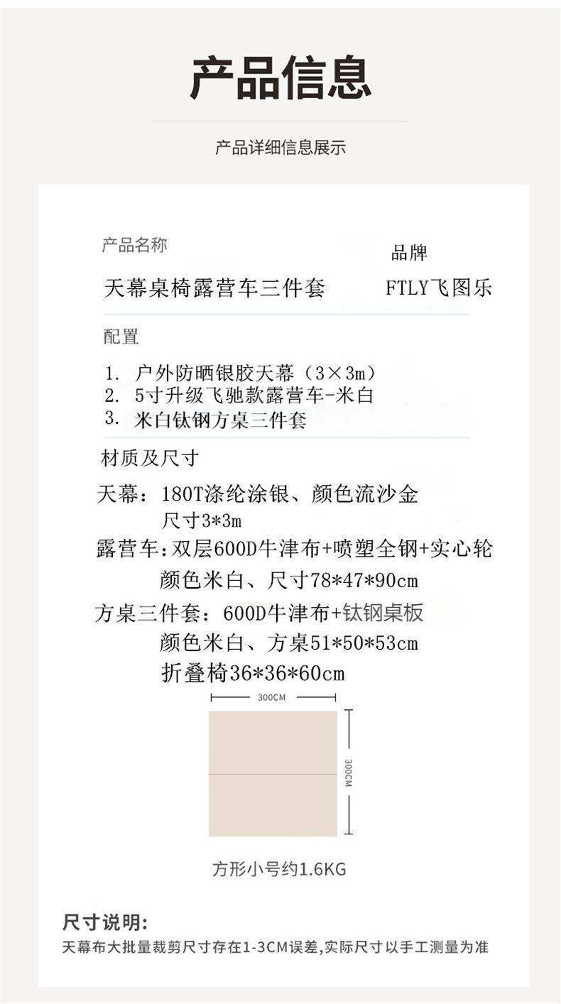 飞图乐(FTLY) 天幕桌椅露营车三件套LYTC0602 LYTC0602 10kg 混色(单位:套)