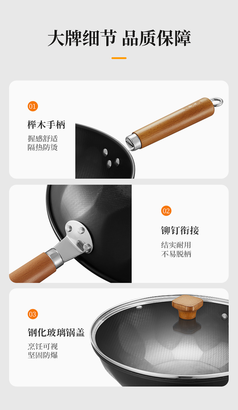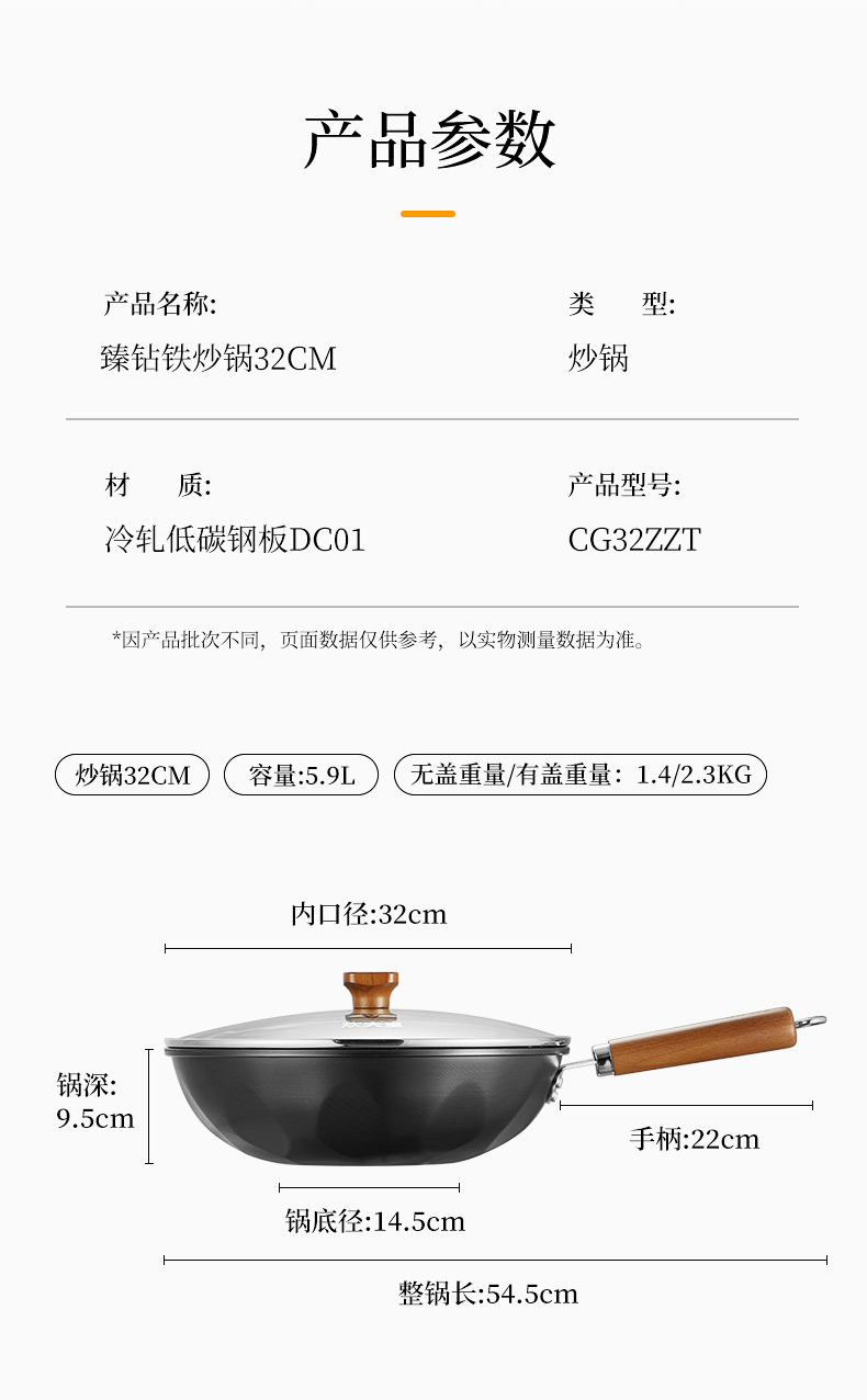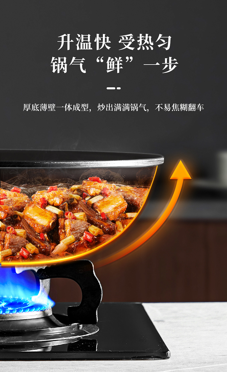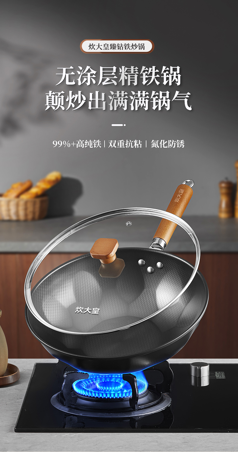 炊大皇 臻钻铁炒锅 CG32ZZT 32cm(带盖) 黑色(单位:个)