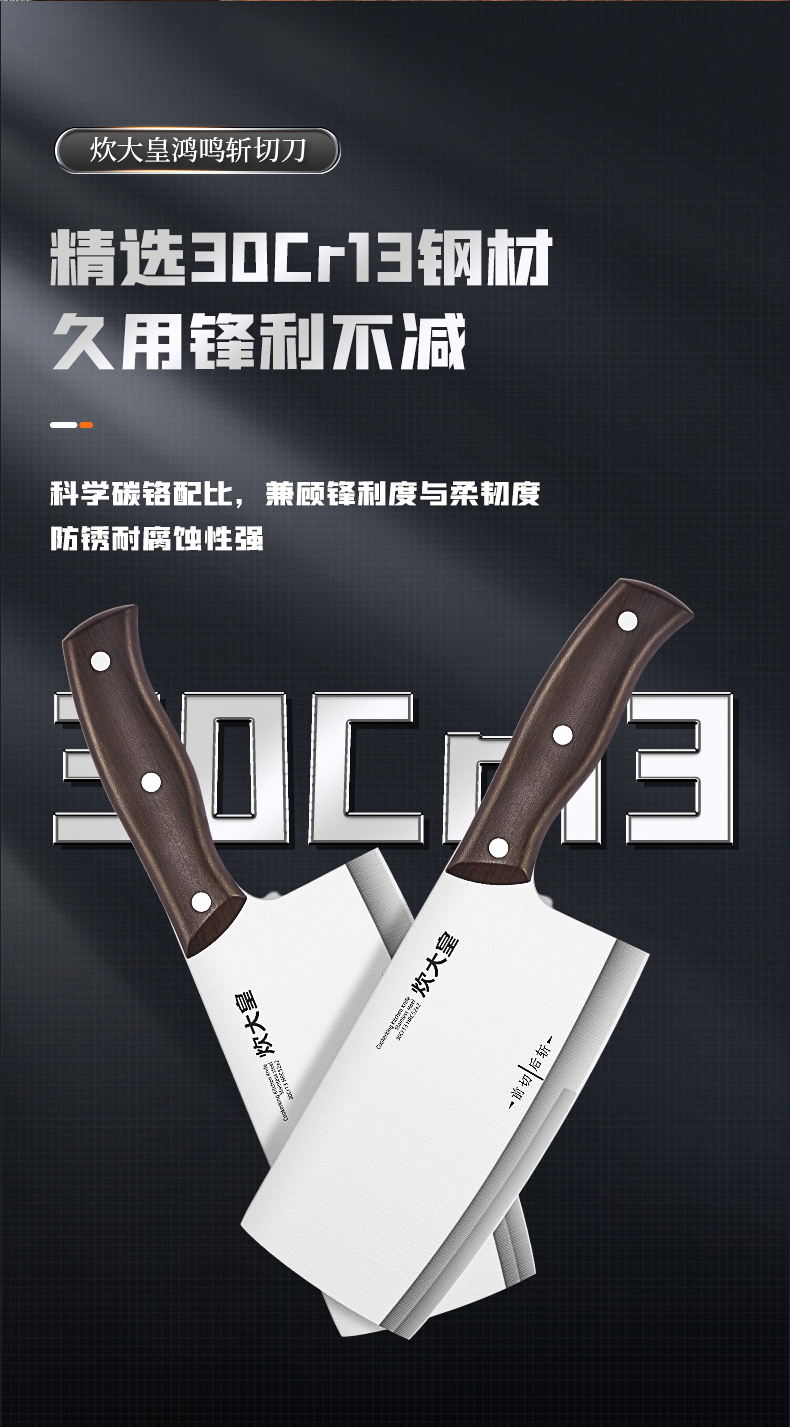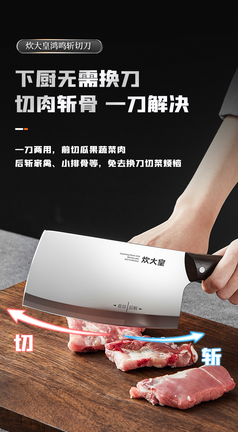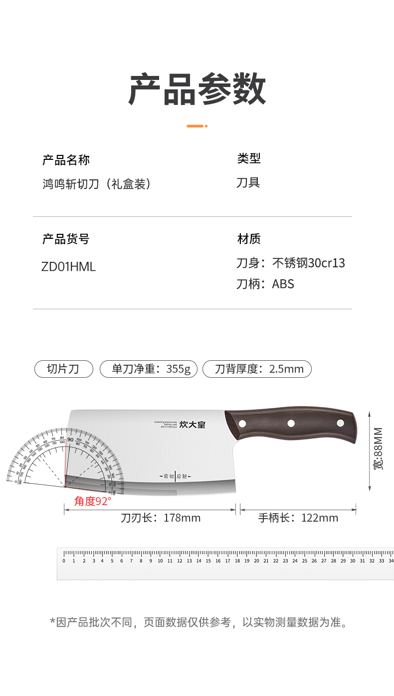炊大皇 鸿鸣斩切刀 ZD01HML 刀刃长:178mm手柄长:122mm宽88mm 不锈钢色(单位:个)