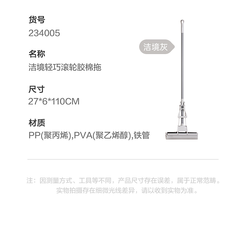 茶花(CHAHUA) 洁境滚轮胶棉拖 234003 33*6*127cm 混色(单位:把)
