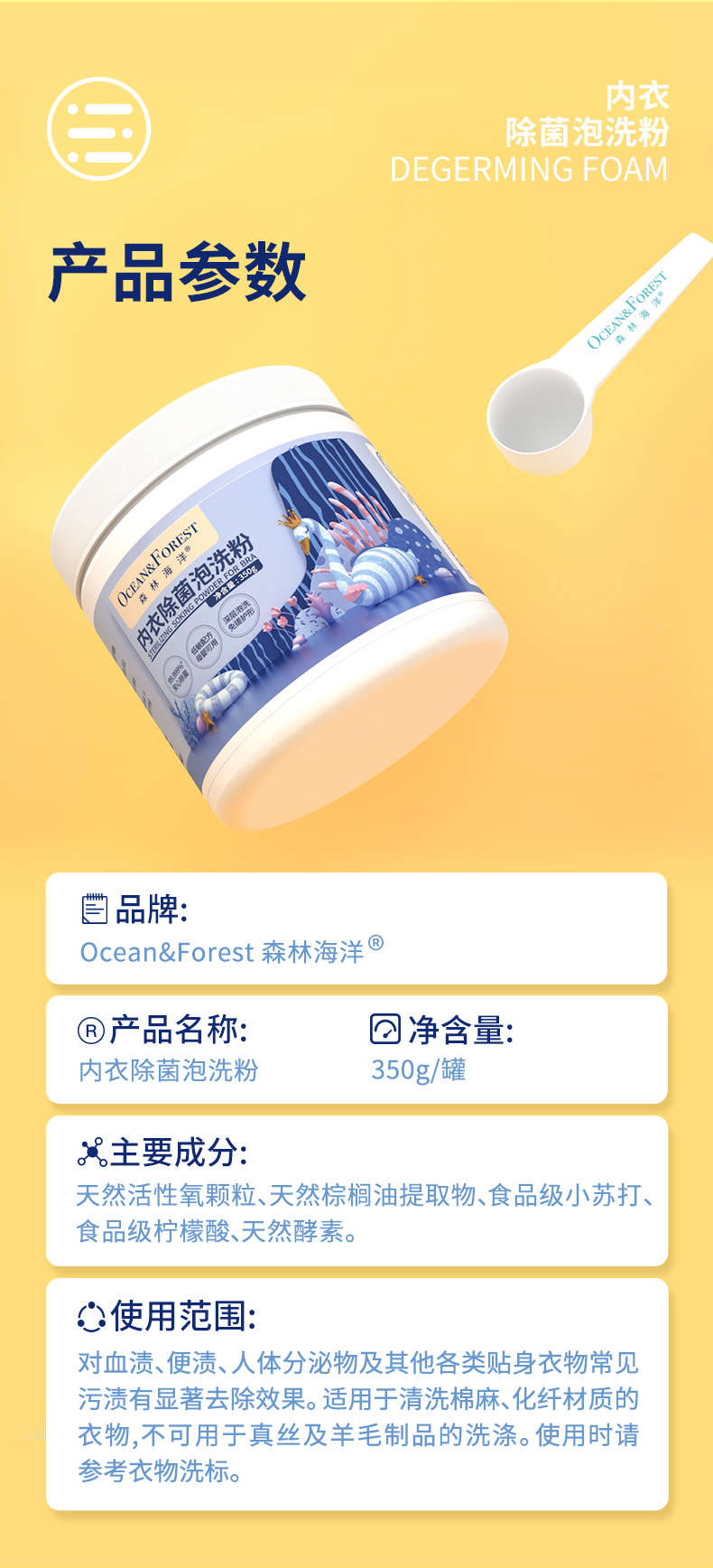 森林海洋 内衣除菌泡洗粉 P1349032 350g*2 蓝白色(单位:组)