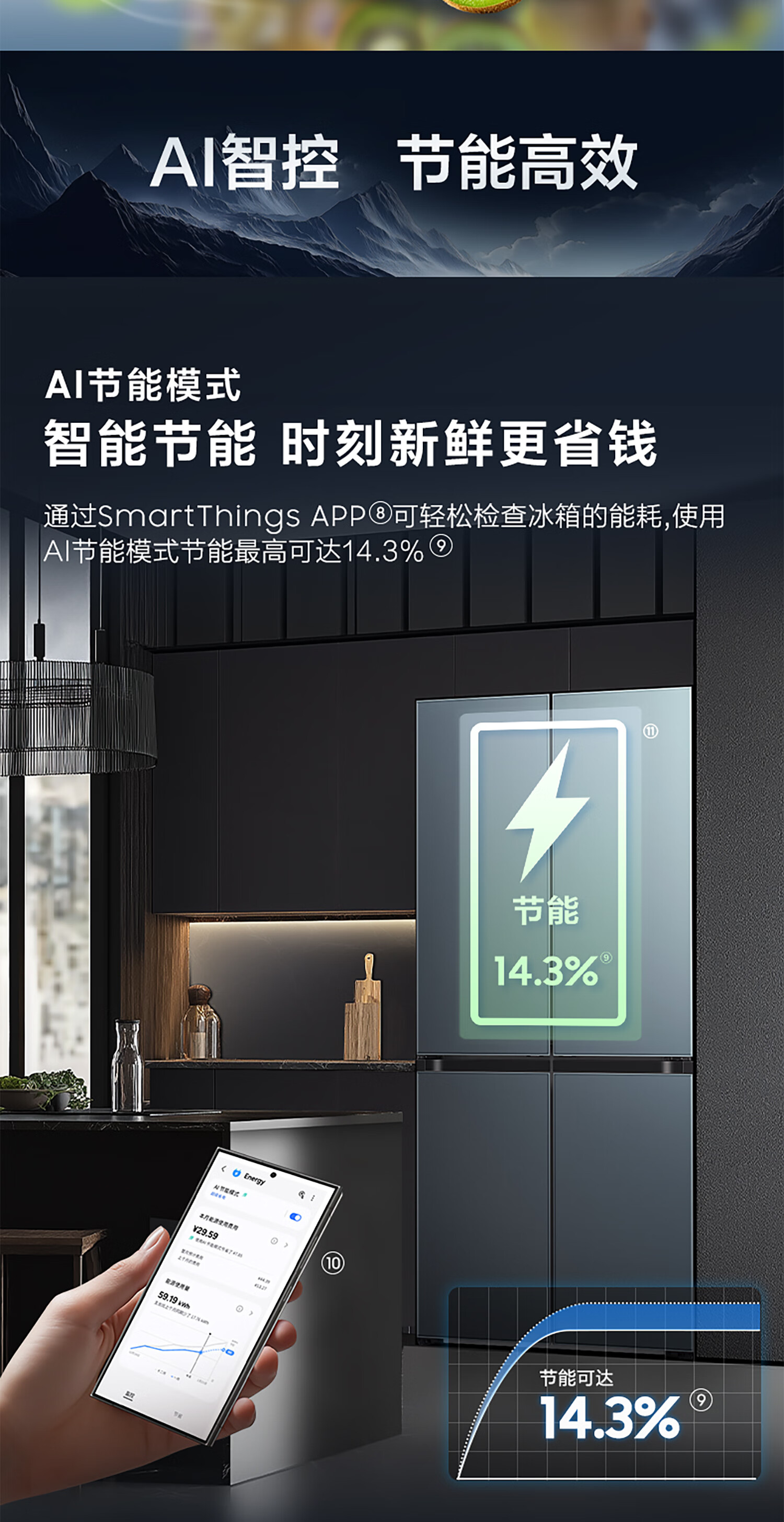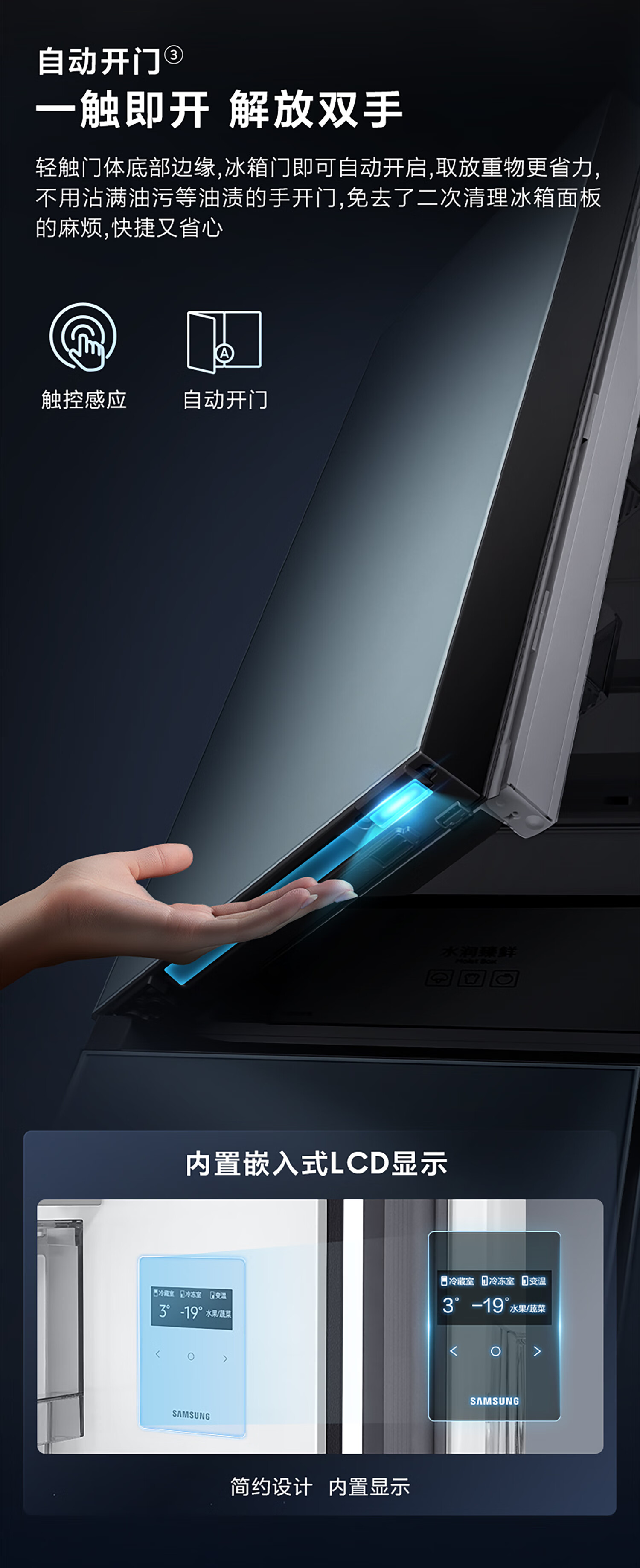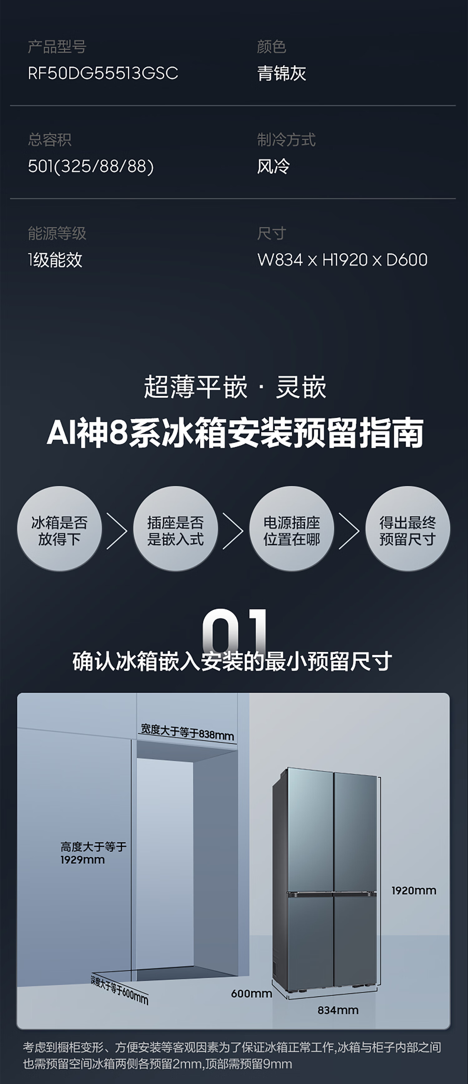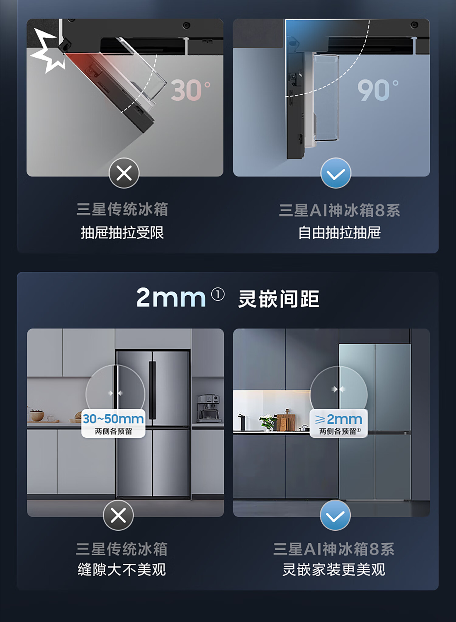 三星(SAMSUNG) AI神冰箱8系尊享款三循环超薄零嵌自动开门 RF50DG55513GSC 501L 青锦灰(单位:件)