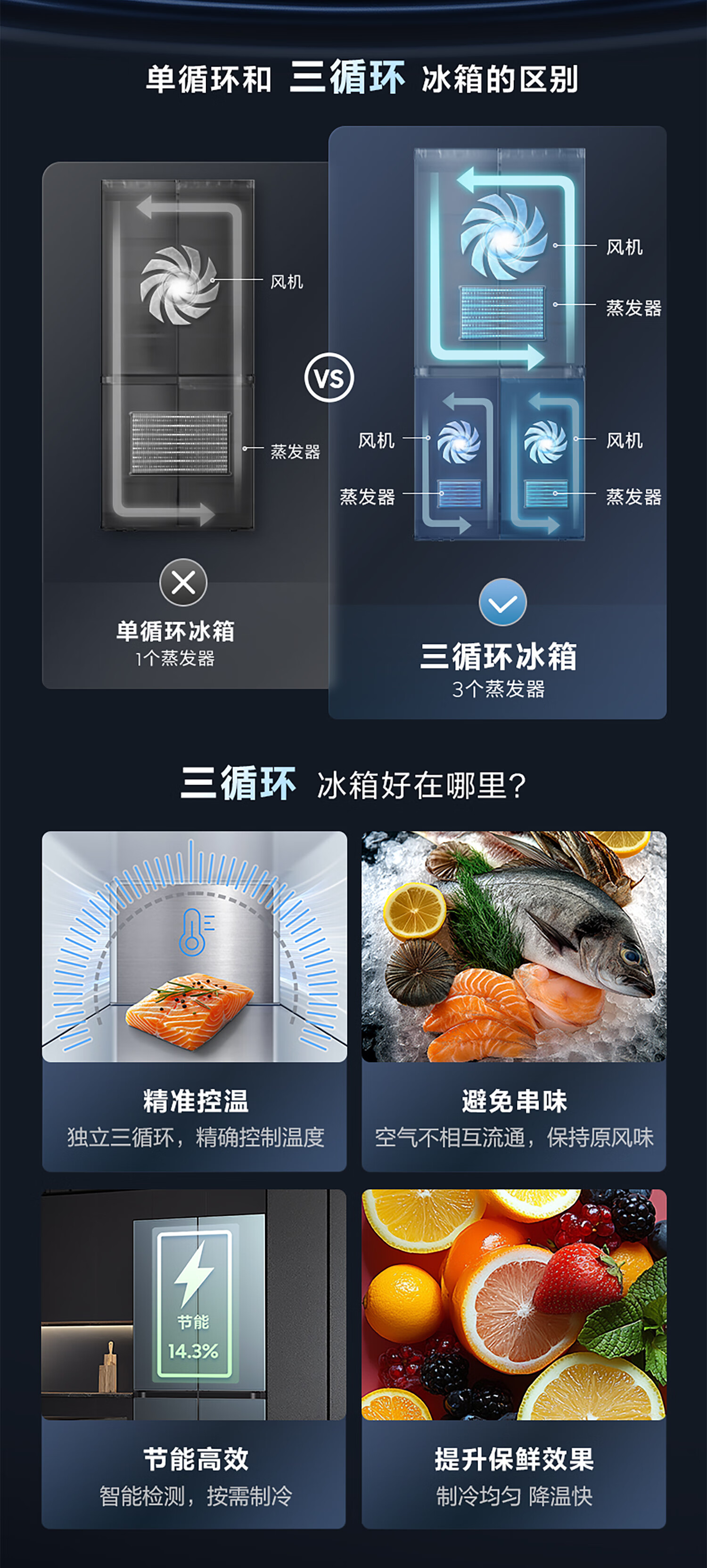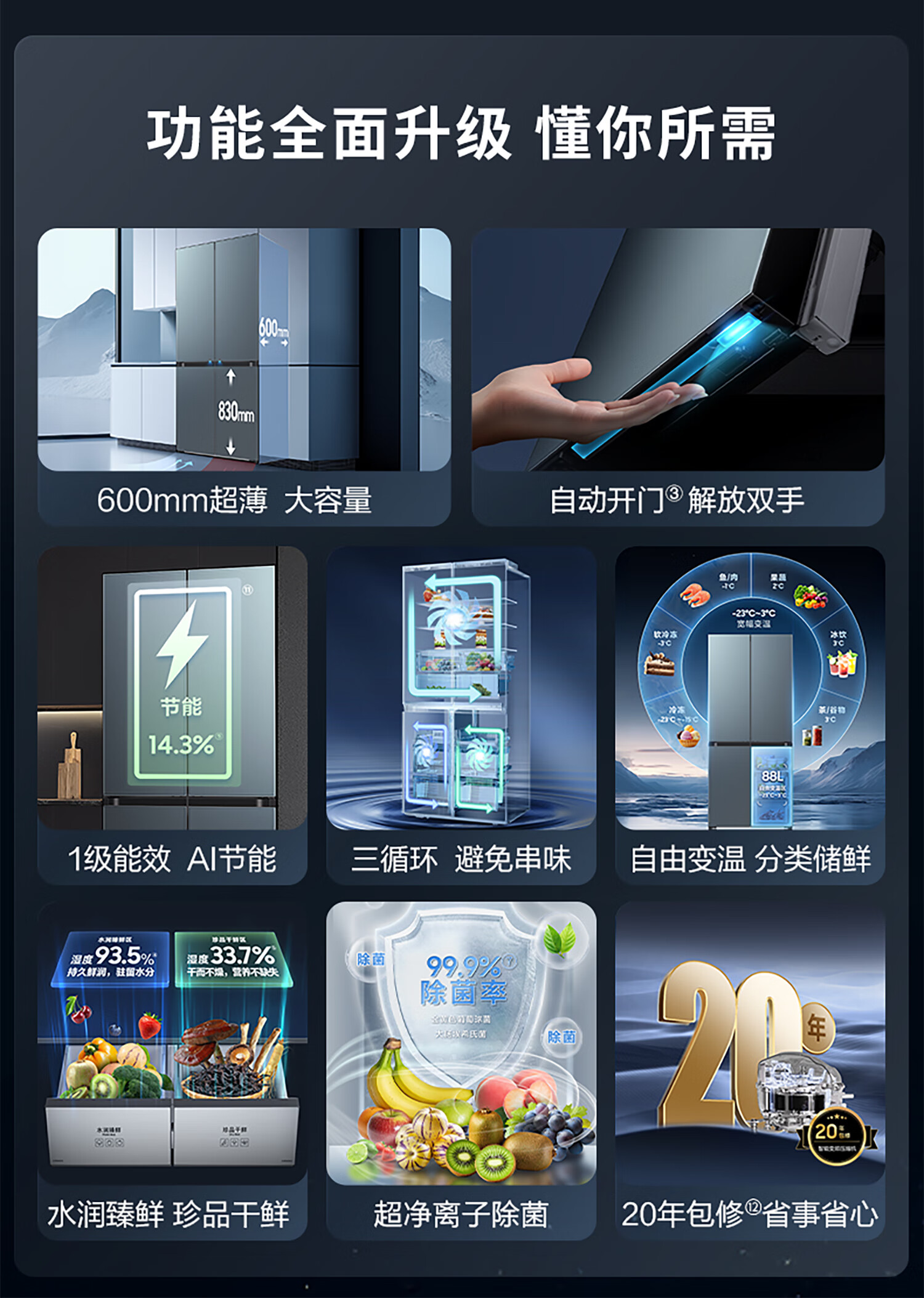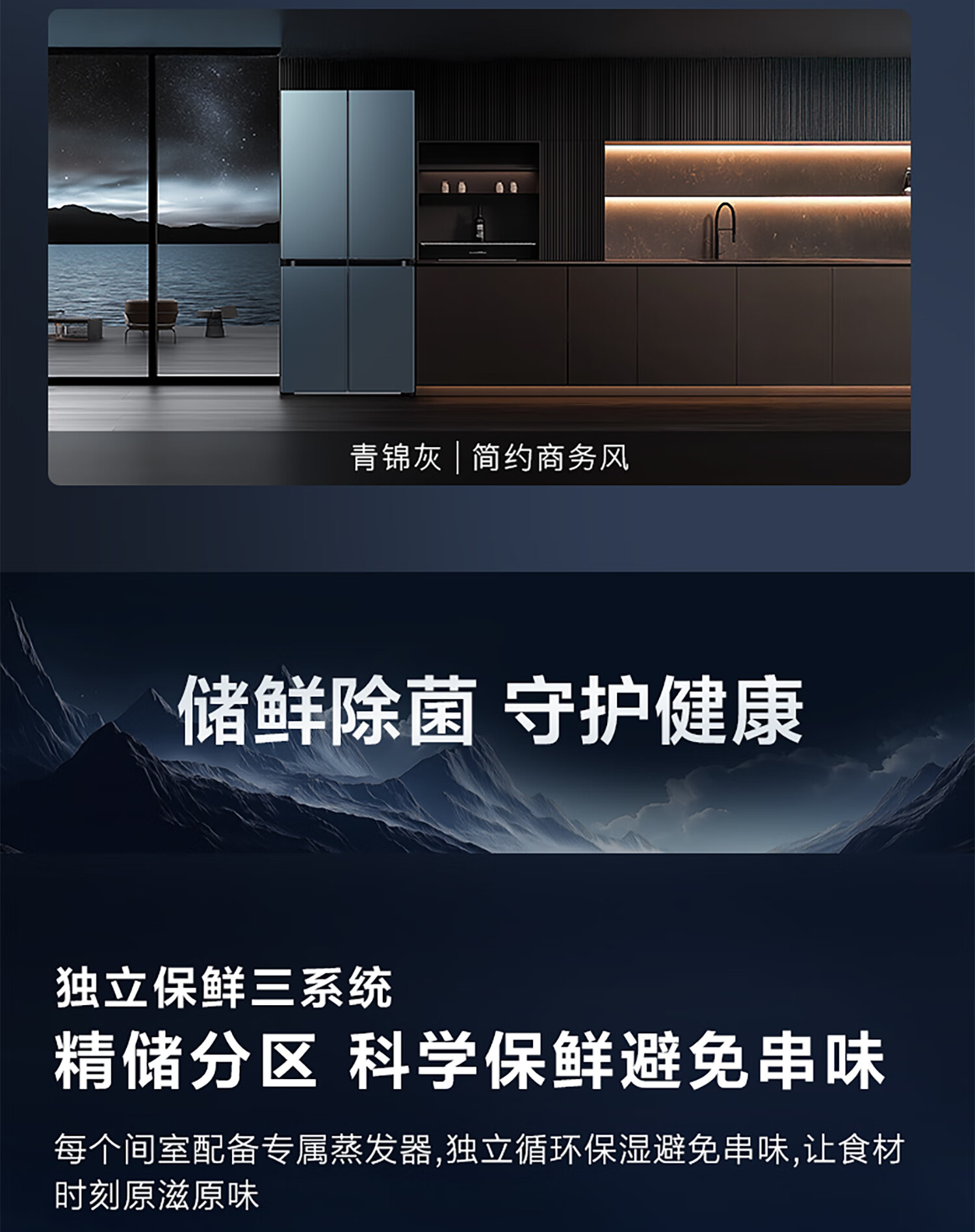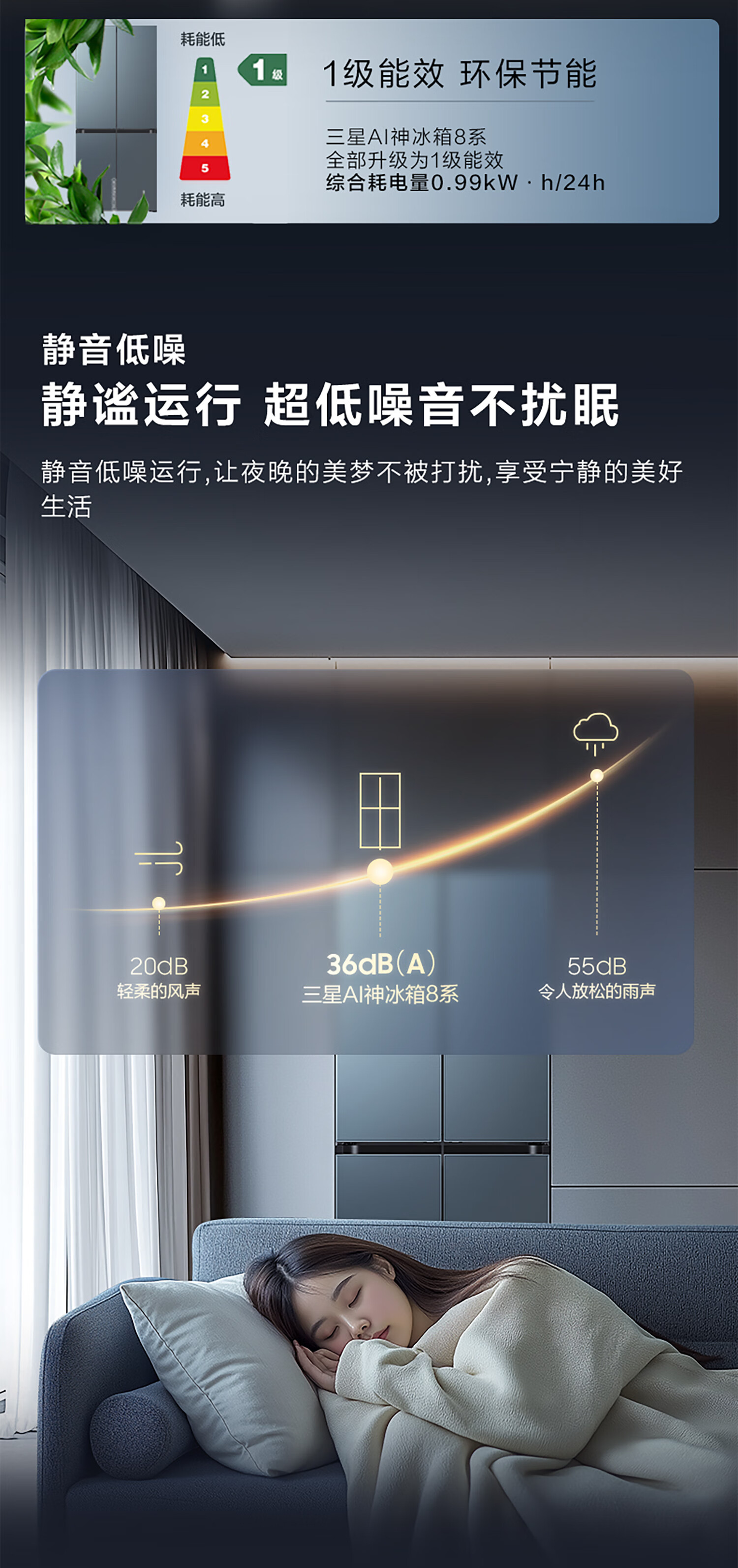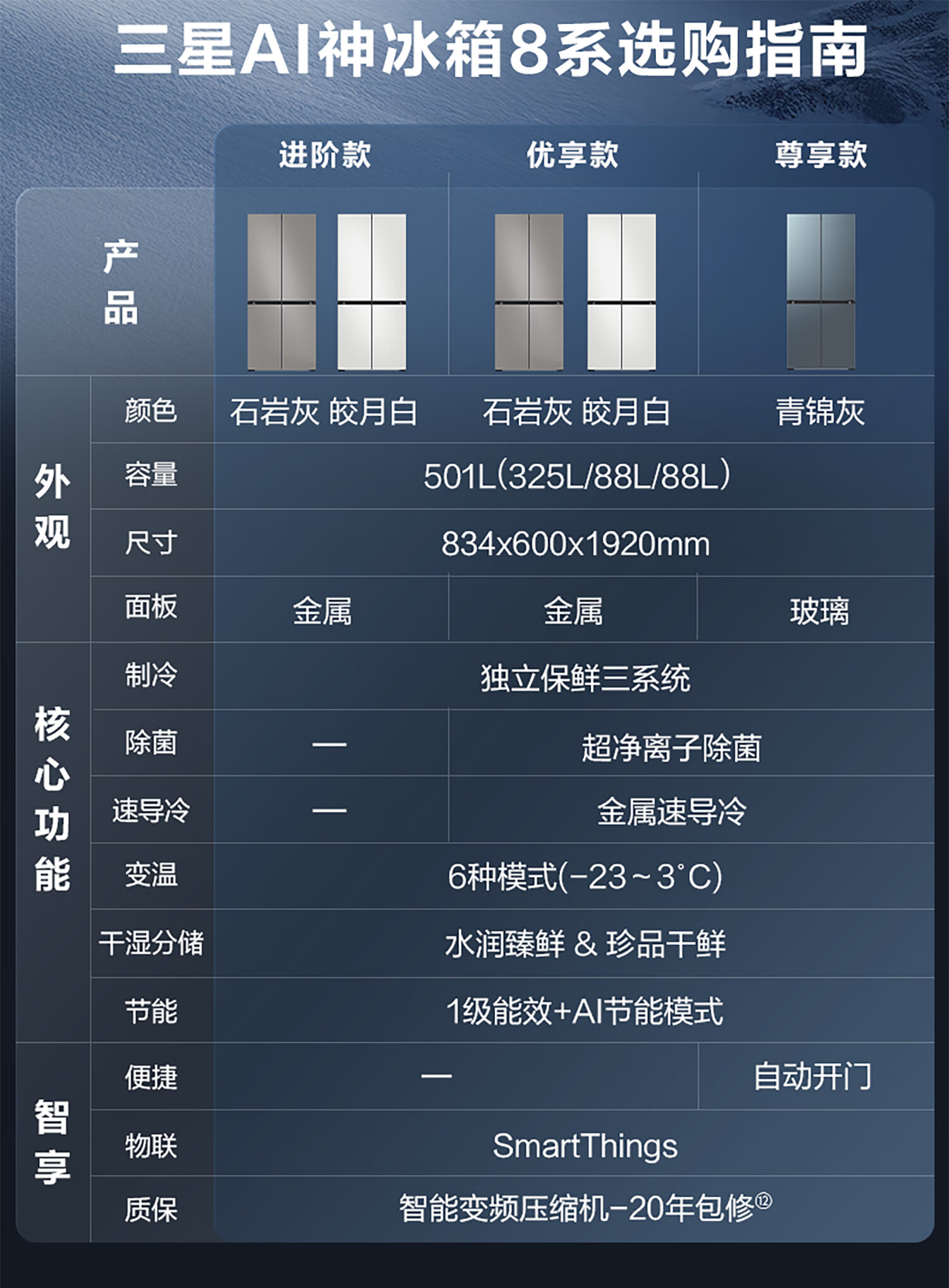 三星(SAMSUNG) AI神冰箱8系尊享款三循环超薄零嵌自动开门 RF50DG55513GSC 501L 青锦灰(单位:件)