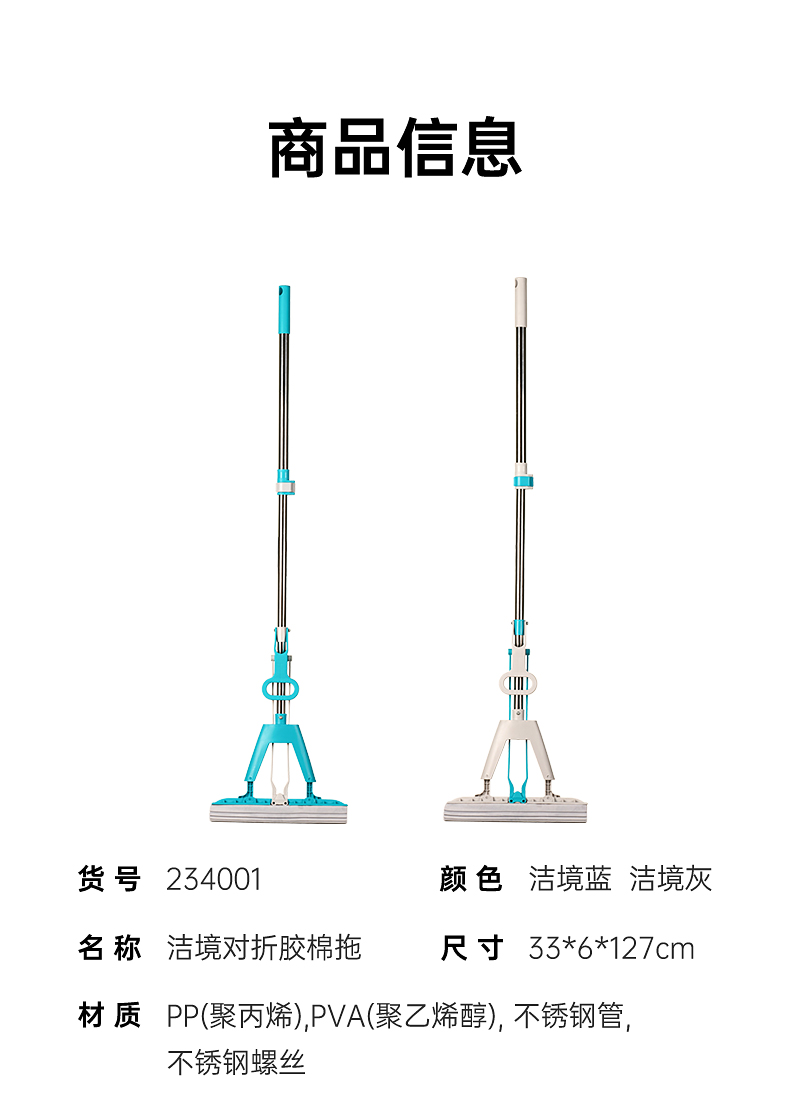 茶花(CHAHUA) 洁境对折胶棉拖 234001 33*6*127cm 混色(单位:把)