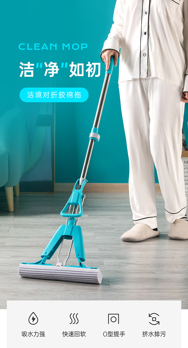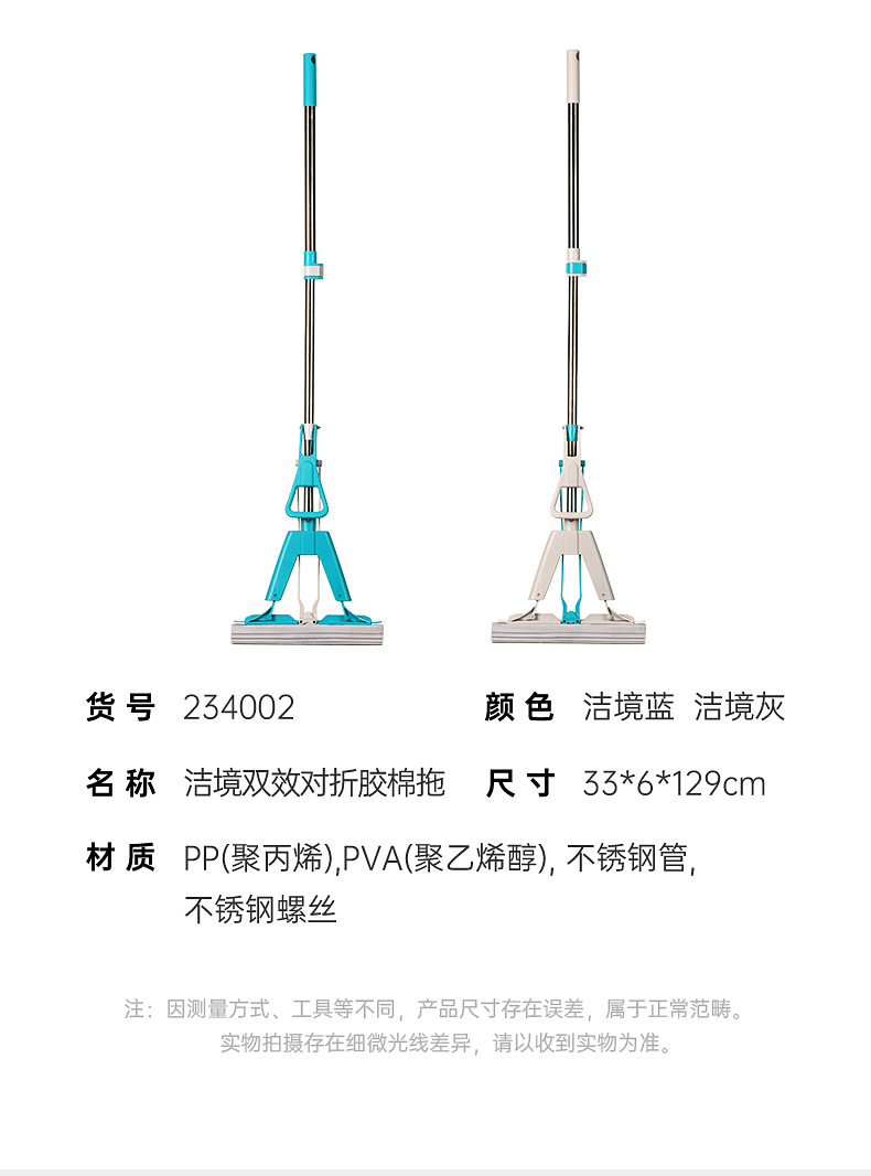 茶花(CHAHUA) 洁境双效对折胶棉拖 234002 33*6*129cm 混色(单位:把)