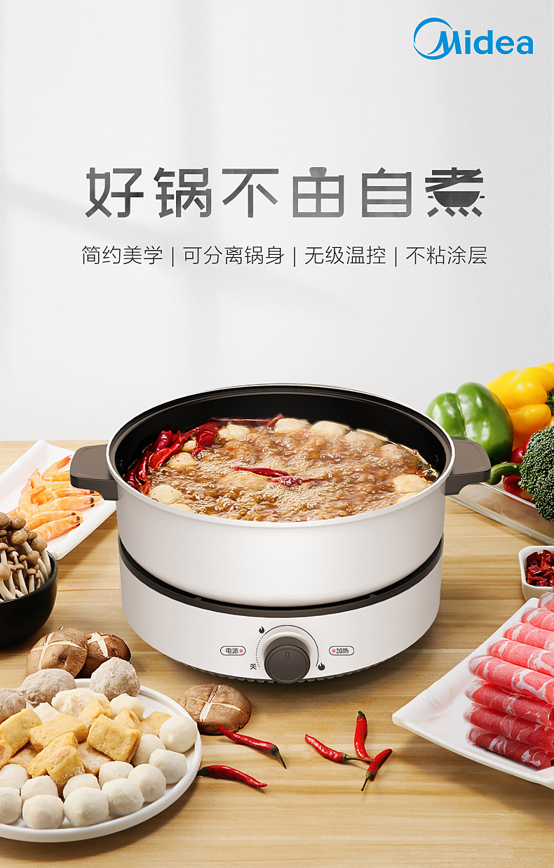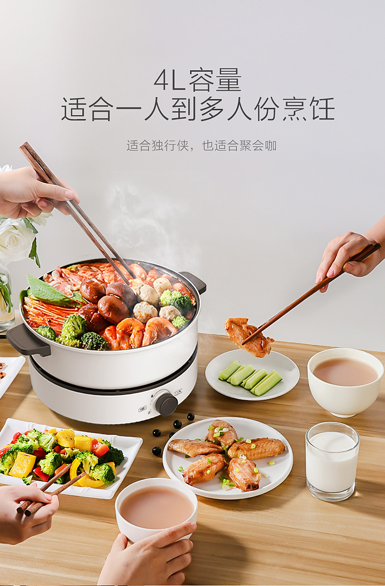 美的(Midea)多用锅电火锅 4L容量标配版 MC-DY26easy501(单位:个) 白色