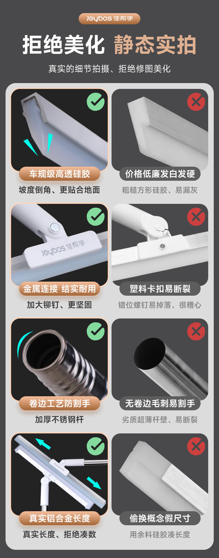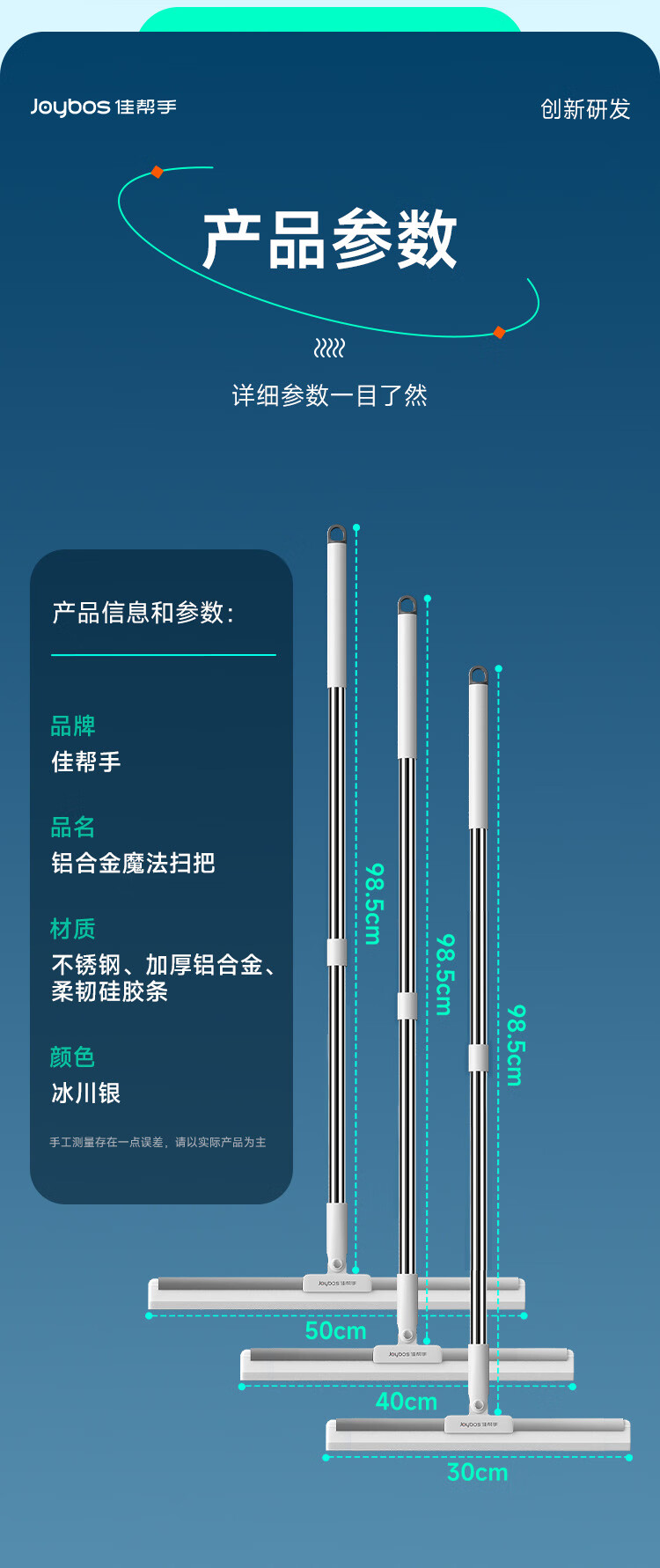 佳帮手 魔术扫把铝合金50卡座款- JBS-MSSB-LVH50K-JWT 【刮水神器】50cm加长 高效清洁 佳白(单位:把)
