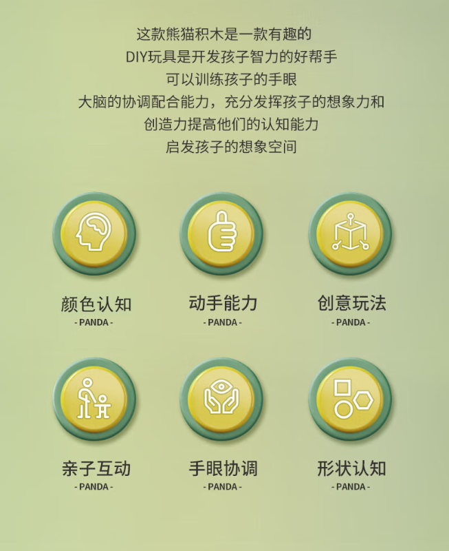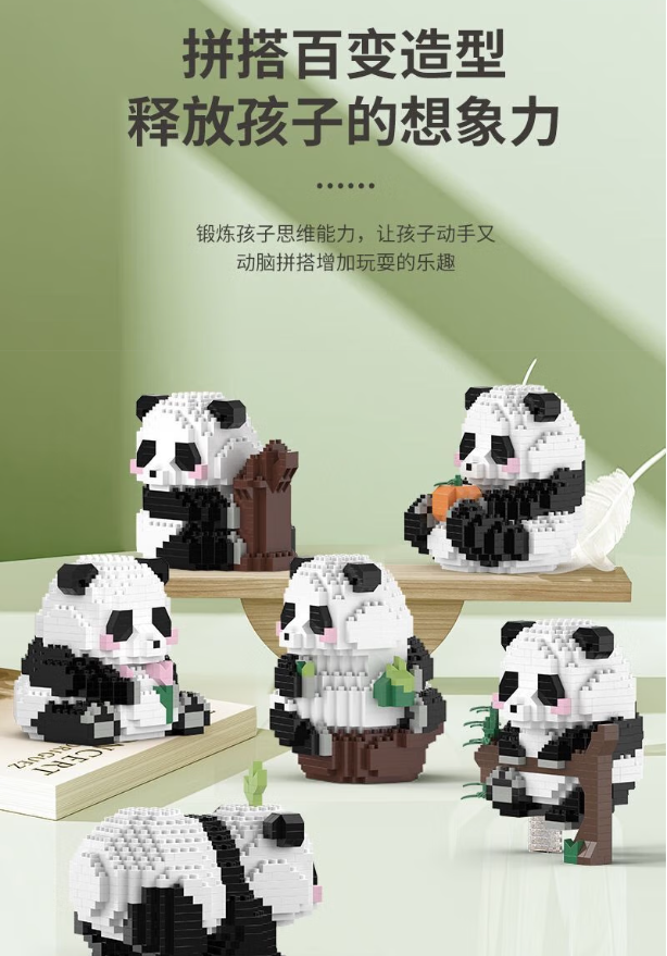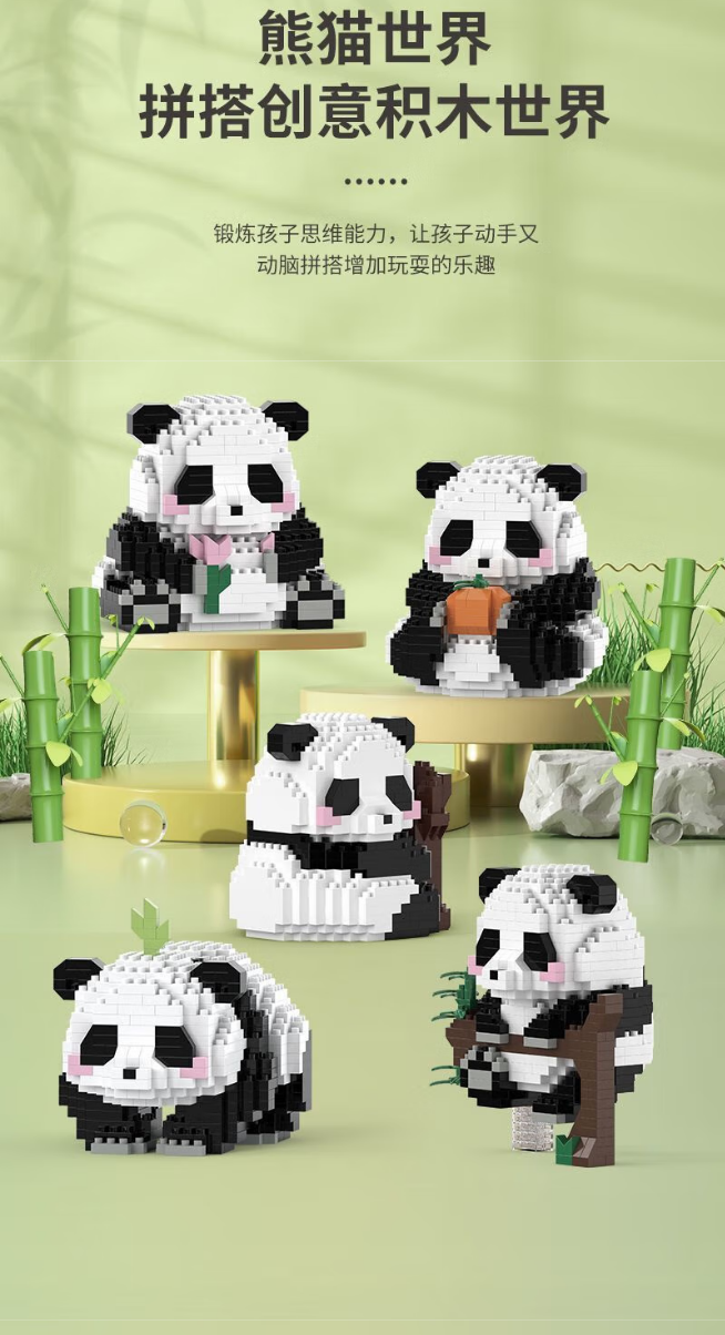 钧捷 积木创意摆件玩具 熊猫公仔(随机两只) 0.2kg 混色(单位:组)