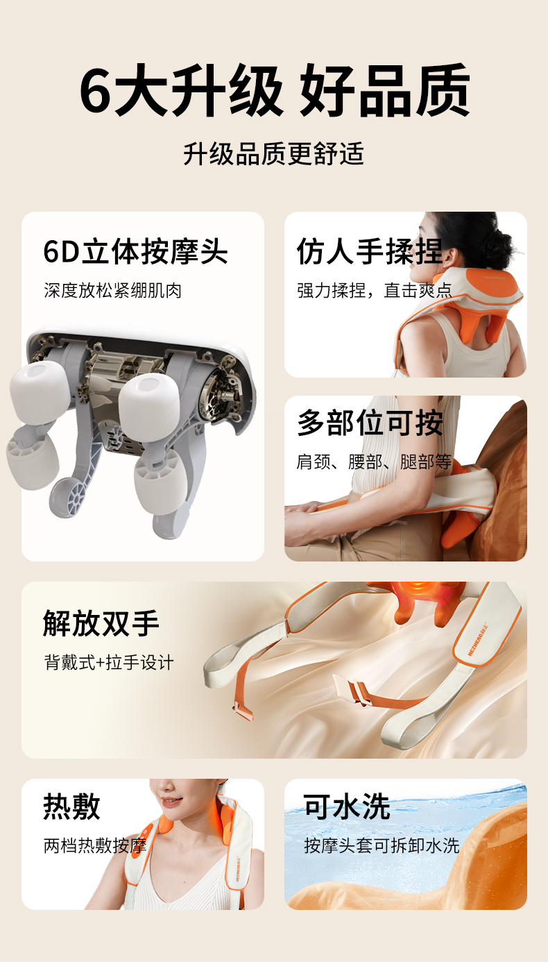 和正(HEZHENG) 颈肩揉捏按摩器揉捏肩颈斜方肌 HZ-S5 净重≈1350g 橙色(单位:个)