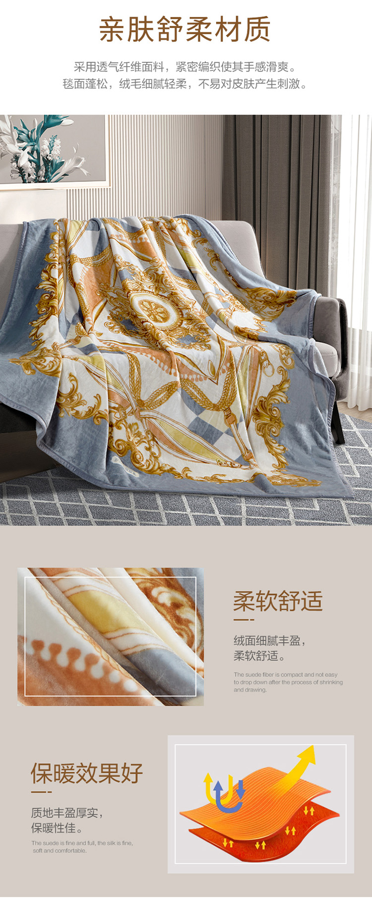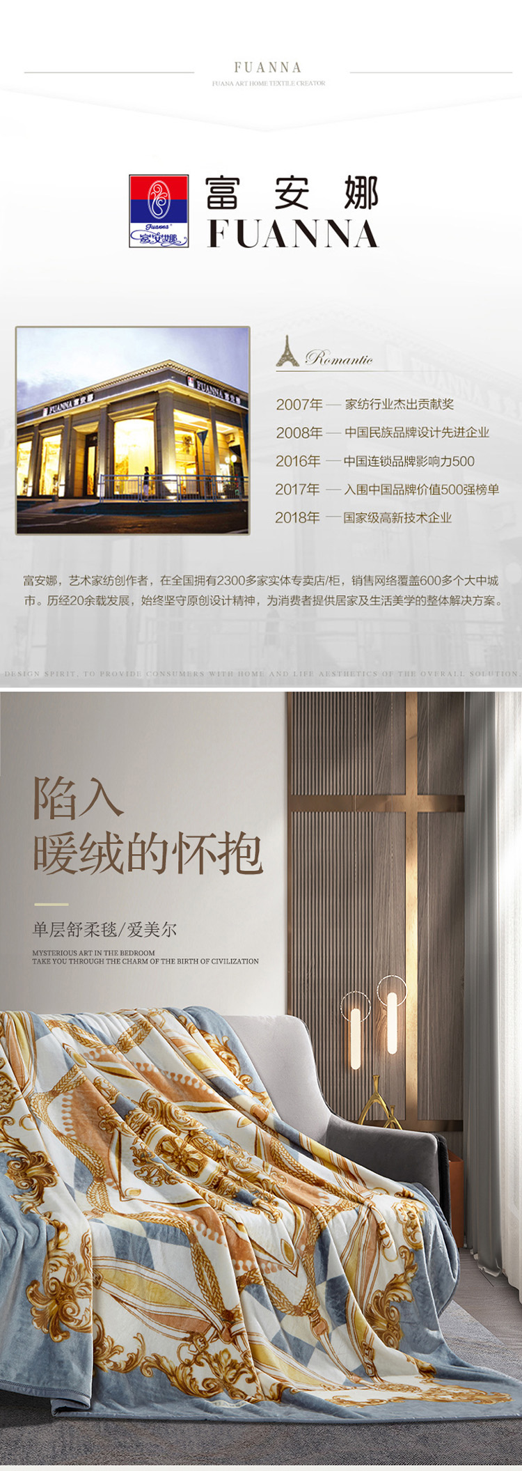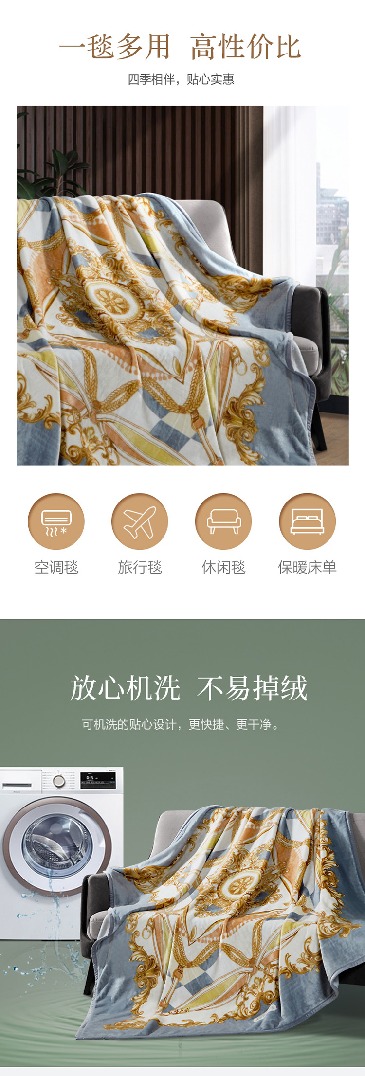 富安娜 家纺 爱美尔毛毯 180*200cm 灰色(单位:个)