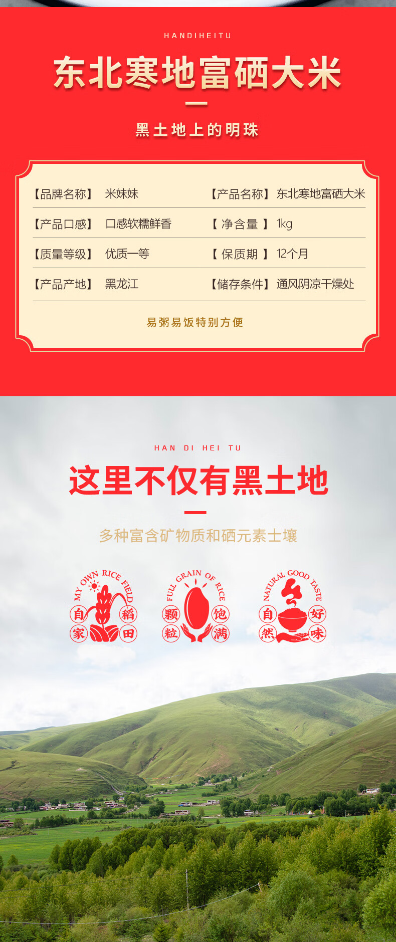 米妹妹(MIMEIMEI) 东北大米 寒地富硒 1kg 混色(单位:盒)