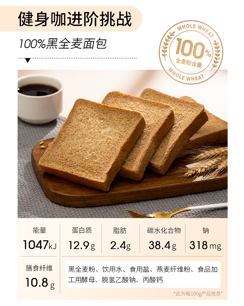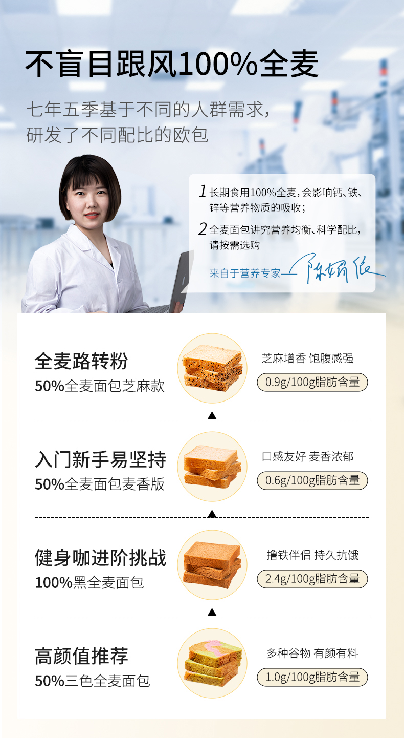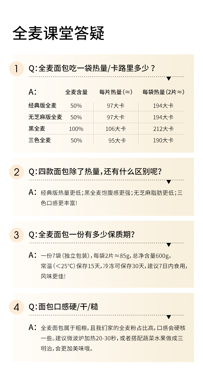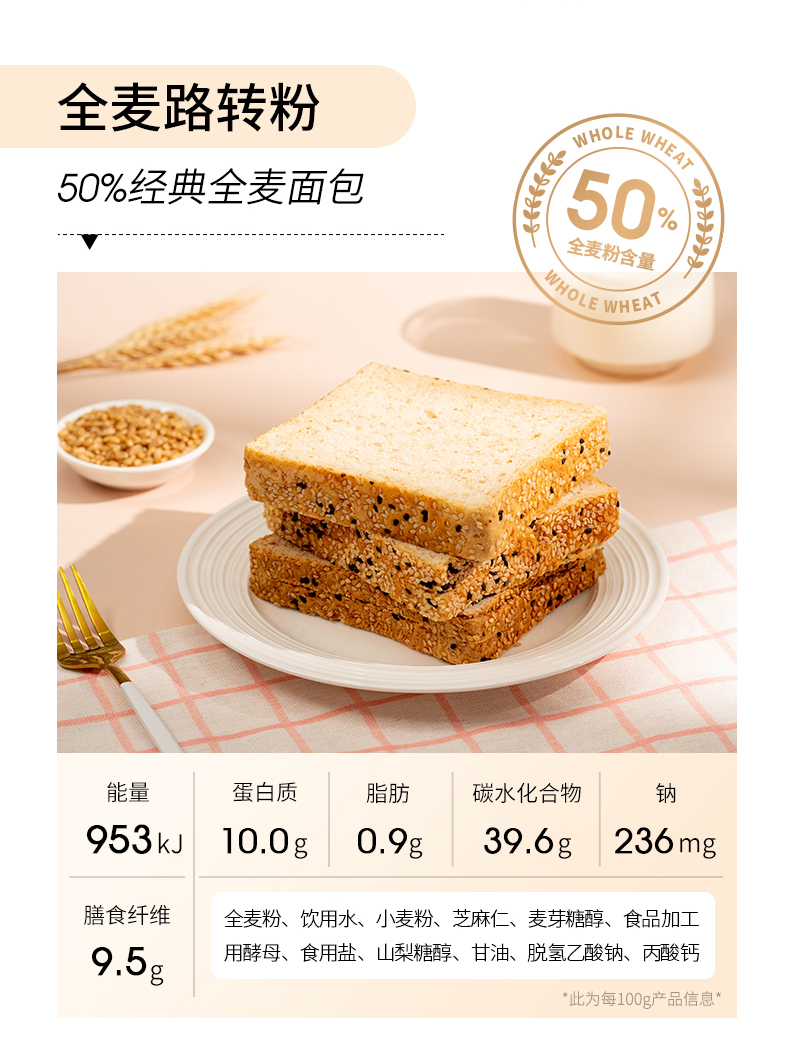 七年五季全麦经典芝麻面包(有芝麻款) 600g 7小袋 2件装 无色