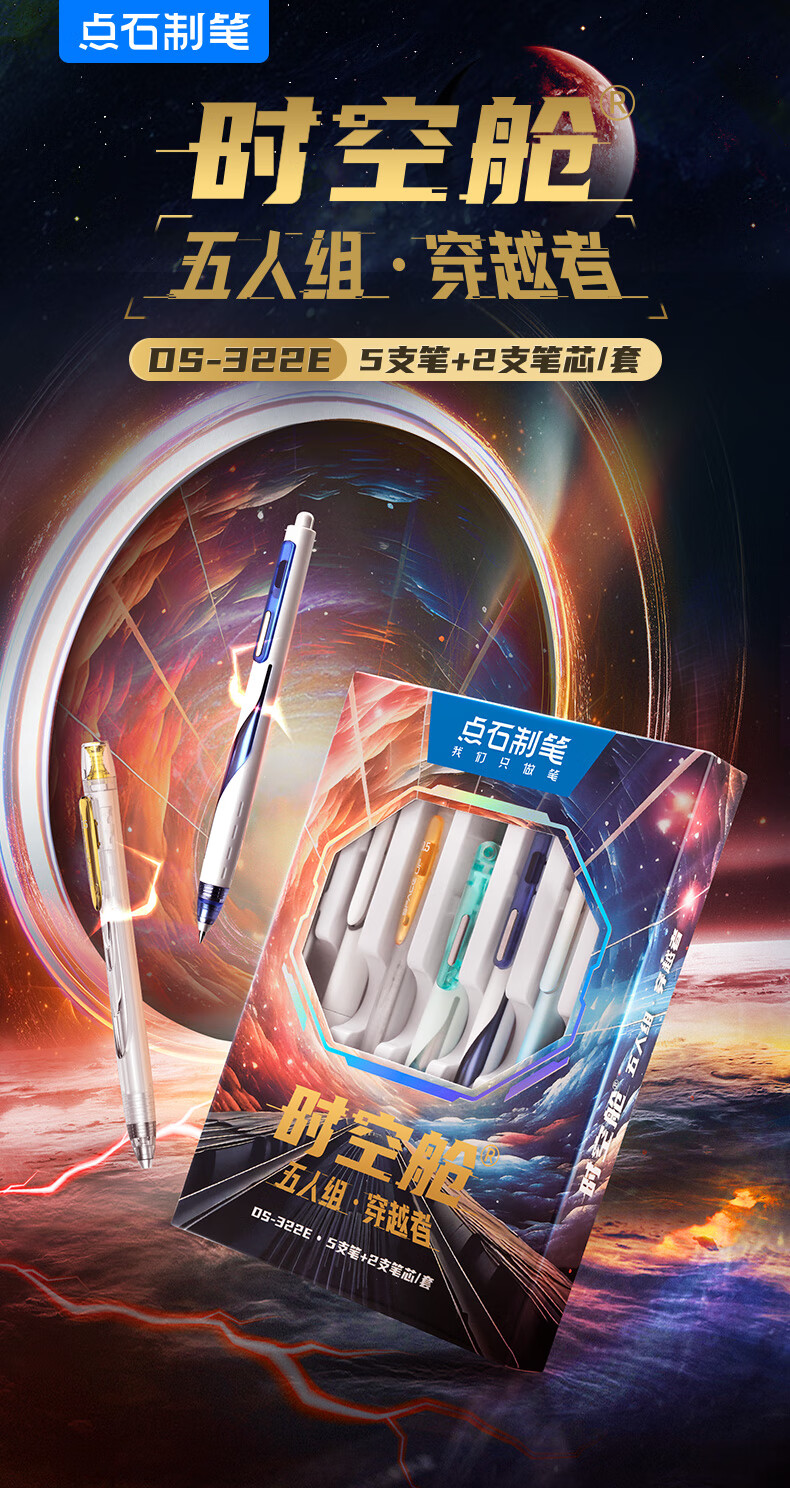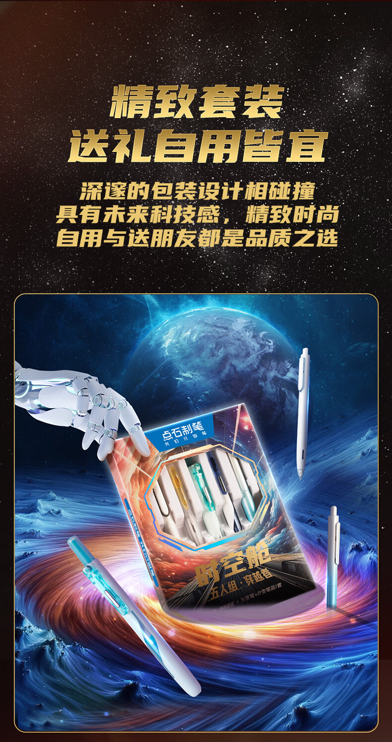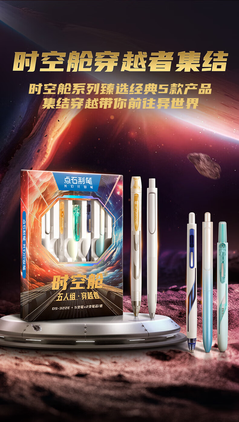 点石制笔 按动中性笔高颜值0.5mm黑笔学生作业考试刷题用笔 322E【穿越者】 7件套 黑色(单位:套)