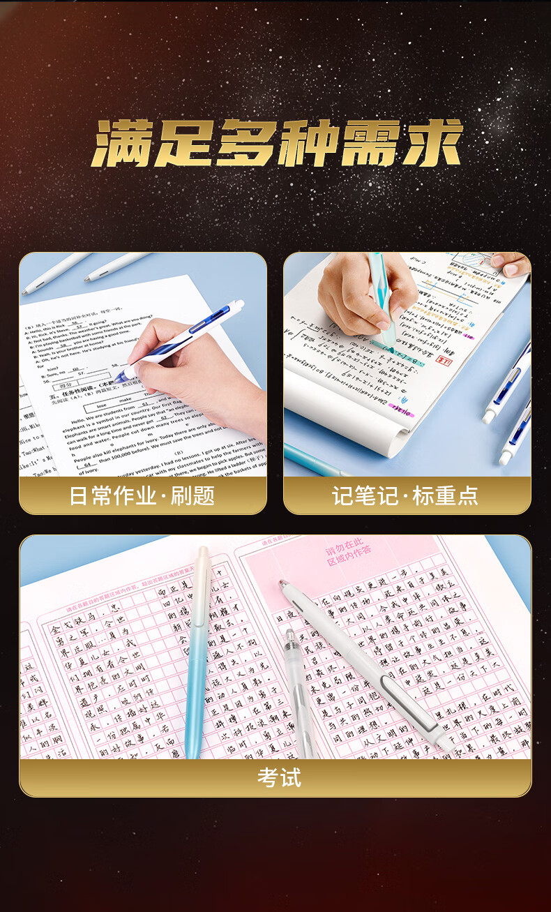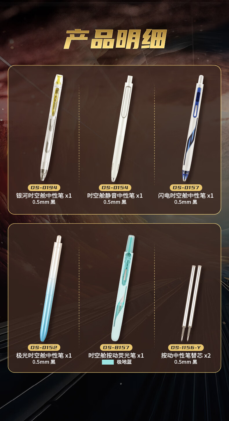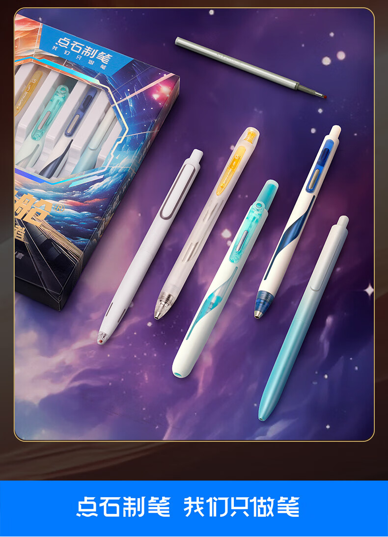 点石制笔 按动中性笔高颜值0.5mm黑笔学生作业考试刷题用笔 322E【穿越者】 7件套 黑色(单位:套)